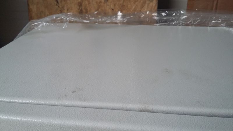 -horná plocha skrine je z dvoch kusov, ktoré nie sú dobre zvarené.