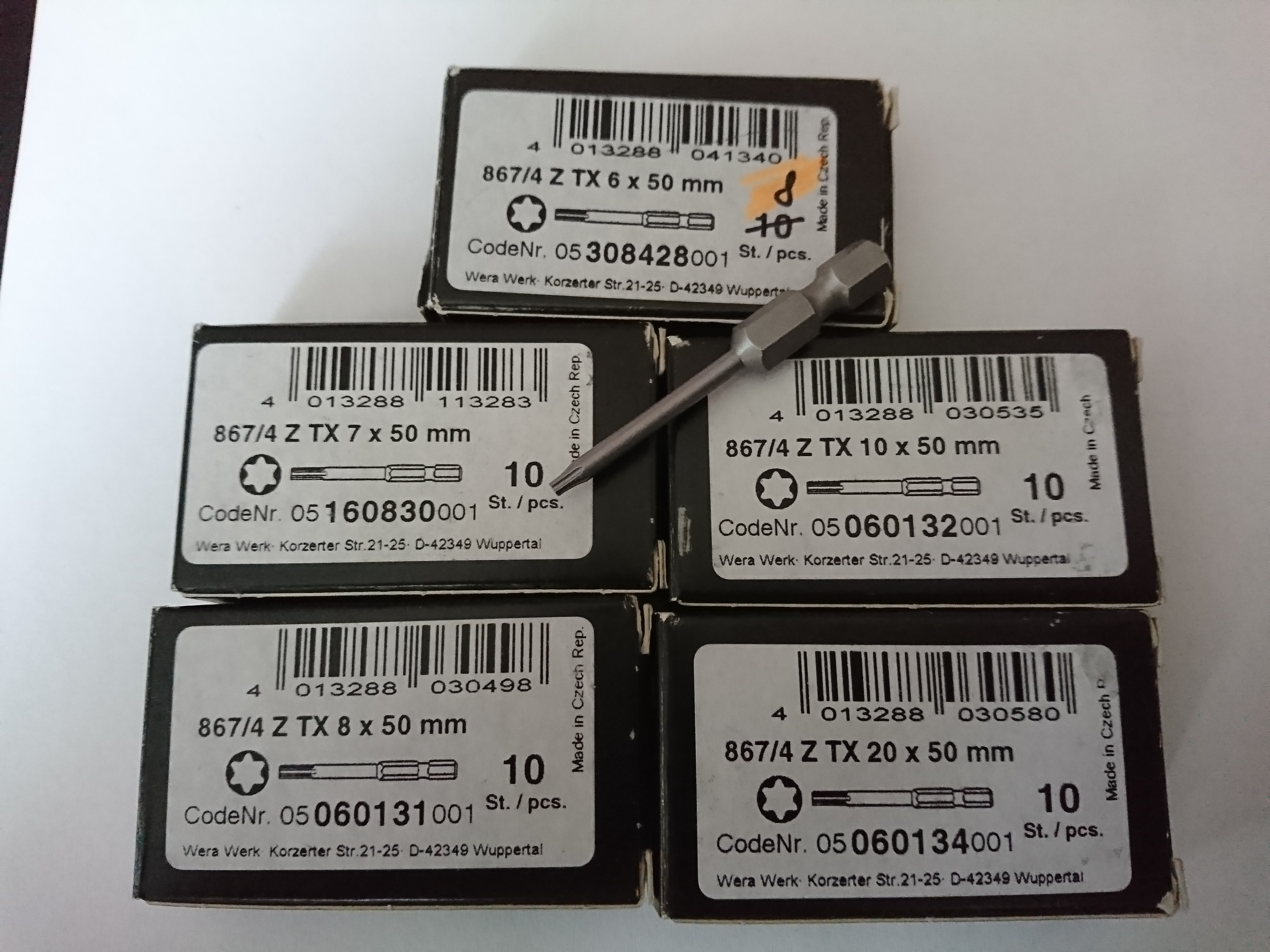 Měl bych zájem o všechny velikosti po 2 ks, ale nechceš se zamyslet nad tou cenou ? 51,- Kč bez DPH stojí nová T6 pro lidi z ulice (např. tady: Torx T6 Wera dlouhý).