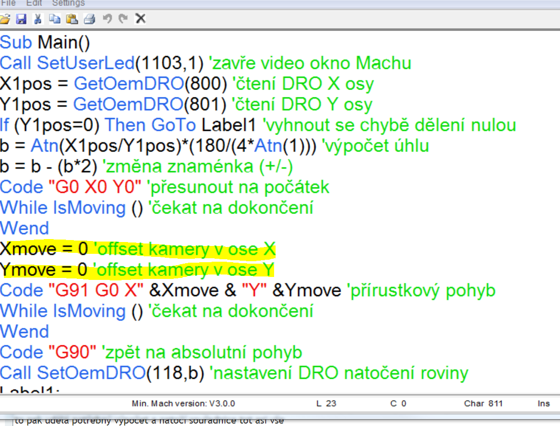a ještě toto nastaví nulu a uhel natočení , takže pokud pálíš plasmou tak je třeba dát nějaký ofset aby to nepálilo na hraně materiálu, ale to jsem již popsal ve změně dvou rádků prostě přidáš třeba o 10mm více