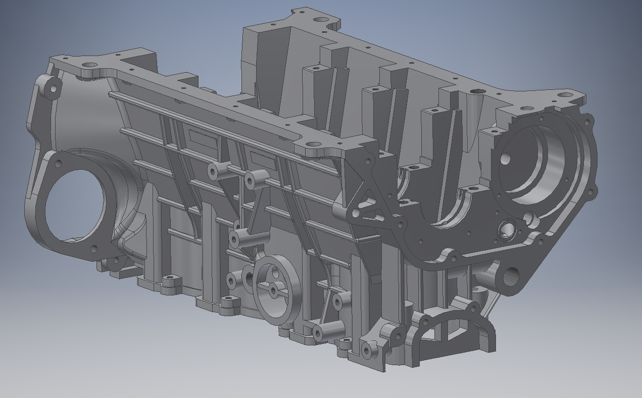 Pokud to bude z válcovaného a né z litého(co se používá na formy) tak tě čeká praní s vnitřním pnutím ,bude to potřeba vyhrubovat ,případně vyhnat vnitřní pnutí a pak dofrézovat netolerované rozměry ,nakonec bych dodělal dosedací plochy pro překlady znovu dělení a vyvrtání válců ,poslední je protočení pro uložení ložisek klikovky. To je tak zhruba všechno.