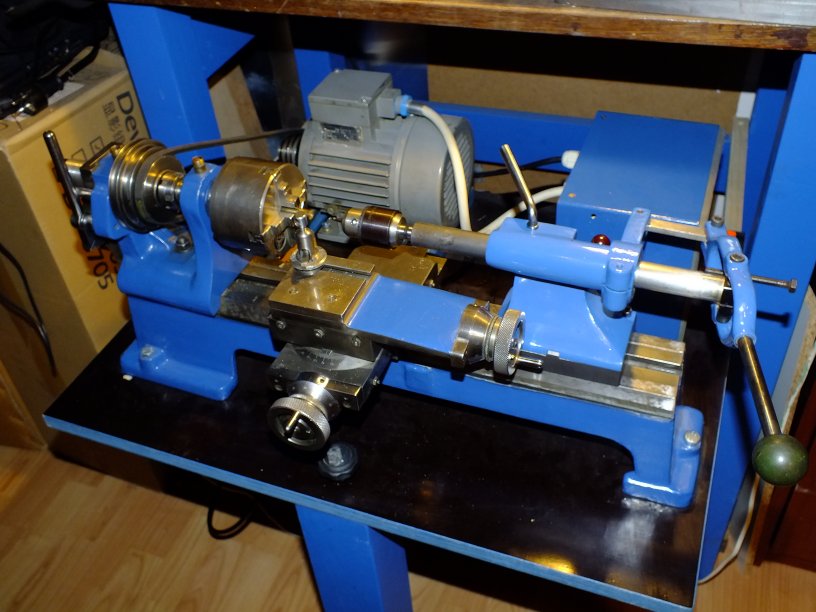 K samotnému soustruhu, zajímavostí je možnost řezání krátkých závitů pomocí axiálně posuvného vřetene, stoupání se určuje výměnnými bubínky na levém konci vřetene. Kromě metrické M0,5 je tam i jakýsi závit H12 a H13. Nevíte někdo, co je to zač? :?: Prozradím, že H13 je výrazně jemnější než ta dvanáctka a obojí je jemnější než M0,5.