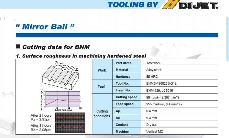 nástroj: DIJET Mirror ball D12R6 posuv 2000, otáčky 8000, vyložení nástroje 30mm