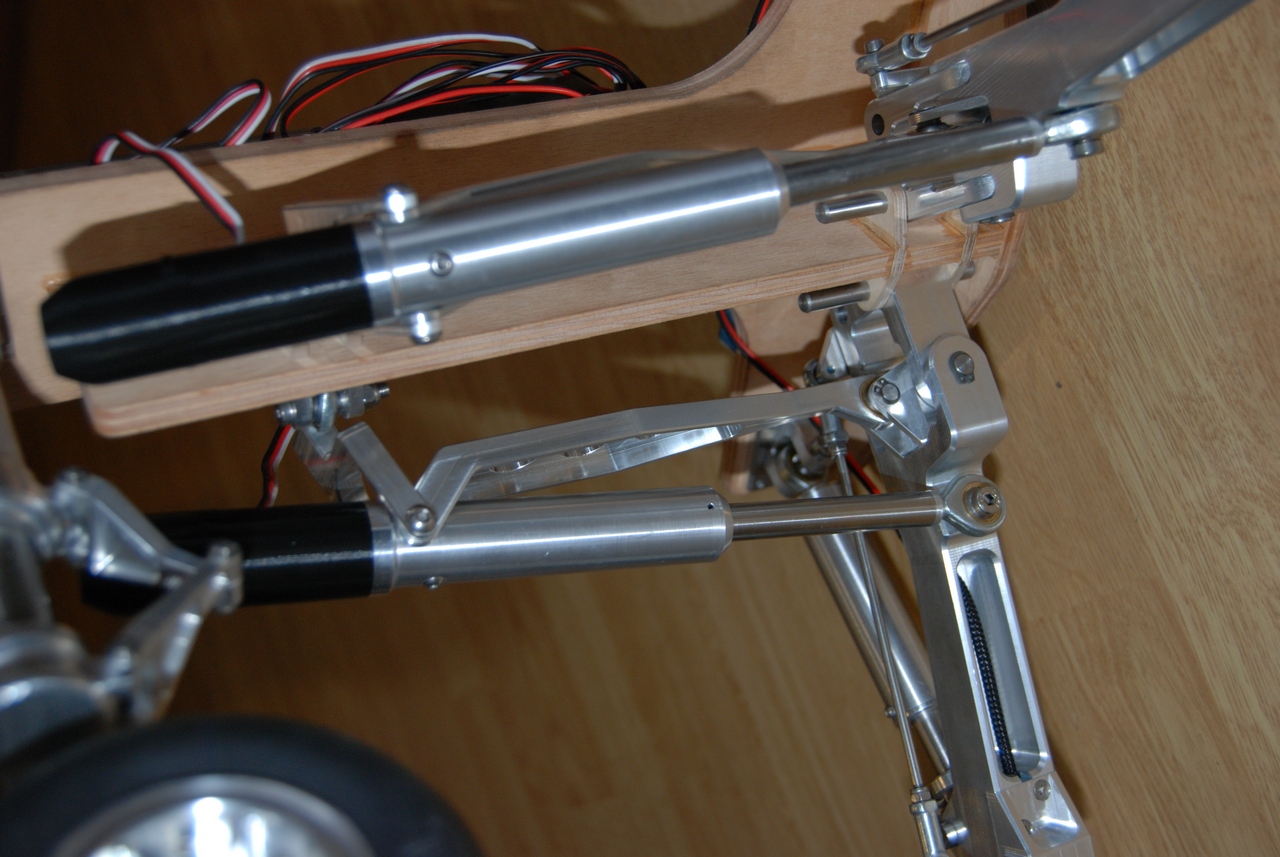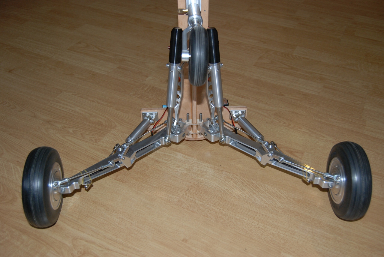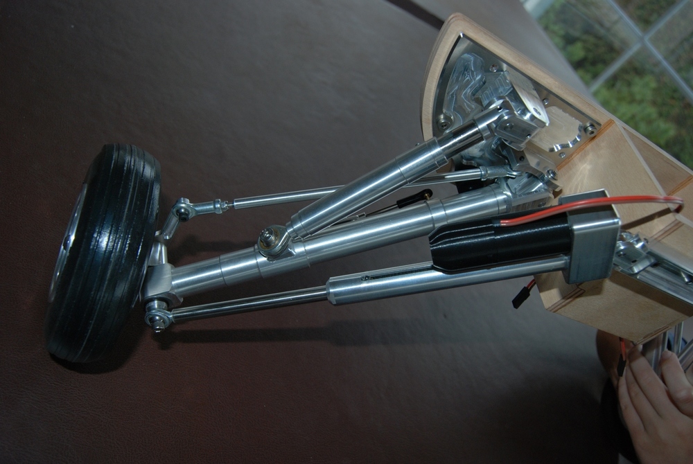 Po dlouhej době něco přidám. Prototyp podvozků na BAE Hawk v měřítku 1:3.5. Vzhledem k váze bylo zapotřebí vyrobit i vlastní zatahovací mechaniky. Tam to bylo ve spolupráci se Španělskou firmou Electron - která ochotně vyrobila dlouhé šroubovice + dodala motory.