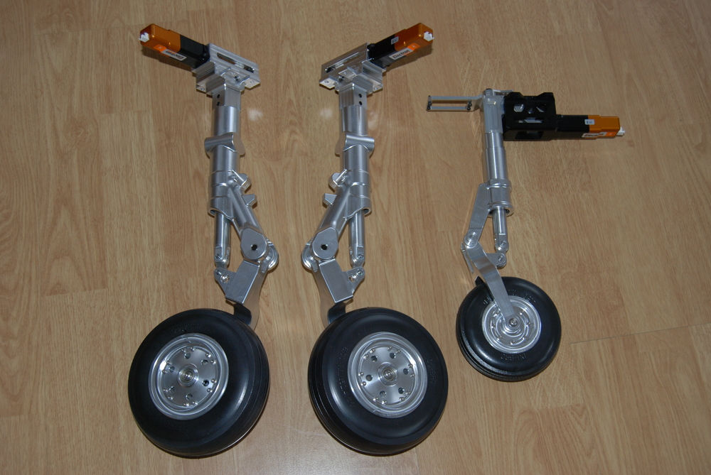 Dokončený podvozek pro Aermachhi M-311. Vč. lineárních aktuátorů.
