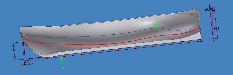 tohle je jednoducha lodicka (zachrany clun a asi jen 10 cm dlouhy) u slozitejsich lodi je ten postup prakticky stejny. Na tom tvem prvnim obr. to je dano tim jak mas kreslena zebra (tipuju nekolik oblouku) chce to delat spline (nebo oblouky ale musej mit tecnou vazbu).