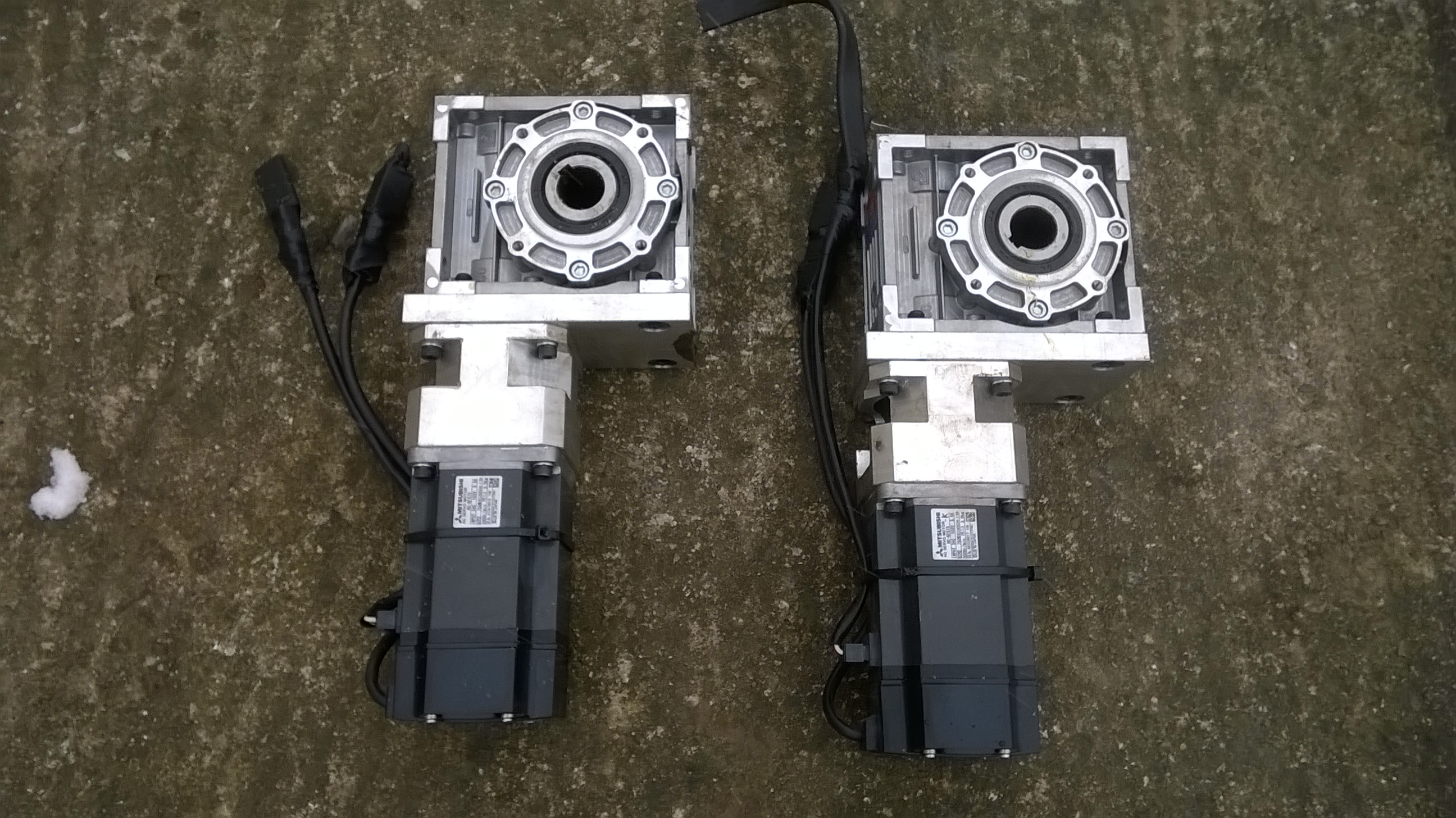 Predáme 2 kusy AC SERVO motorov MITSUBISHI, typ: HC- KFS73 s prevodovkami 1:30. Výstupné otáčky cca 100 ot/min. Sú bez driverov, minimálne používané. Cena za kus 150 eur.