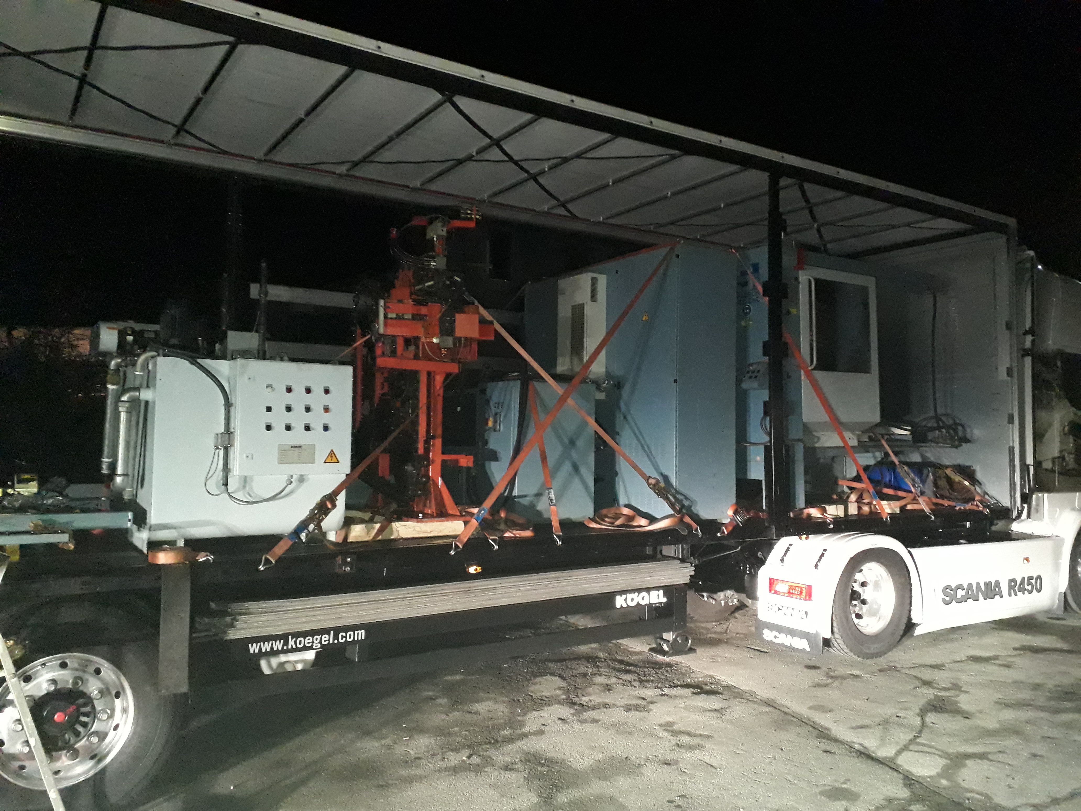 Stroj a jeho komponenty vyplnily celý návěs 13,5m dlouhý.