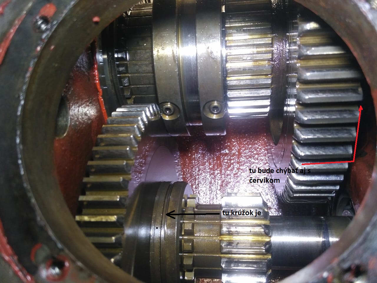Ten zaisťovací krúžok bude z toho horného kola, ktoré je zaistené červíkom na vretene. Najskôr sa povolil aj ten červík, a celé kolo sa posunulo dolava, a tým aj vyradilo rýchlosť. Musíš zhoda zhodiť dekel, a dať tam červíka, aj zaistenie. Ale na tom dolnom lavom kole nevidím vydličku, skús tam namacať, či neni odvisnutá dole, a či to nebude pes zakopaný.