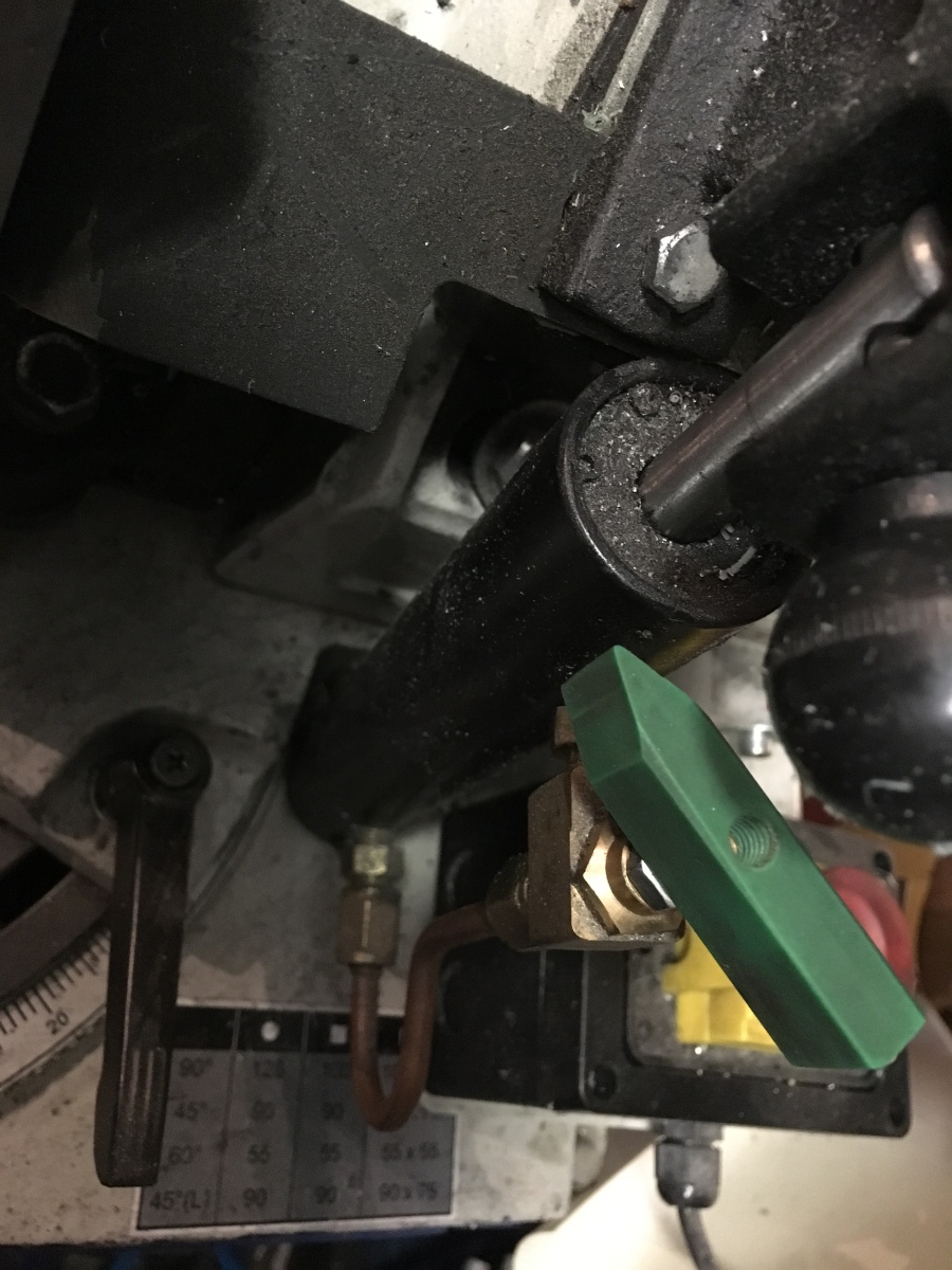je třeba vyřešit i odsávání - tím že se pás pohybuje dolů, nese sebou všechny špony a ty padají na hnací kolo - brzo to přestane řezat - připojuji vysavač