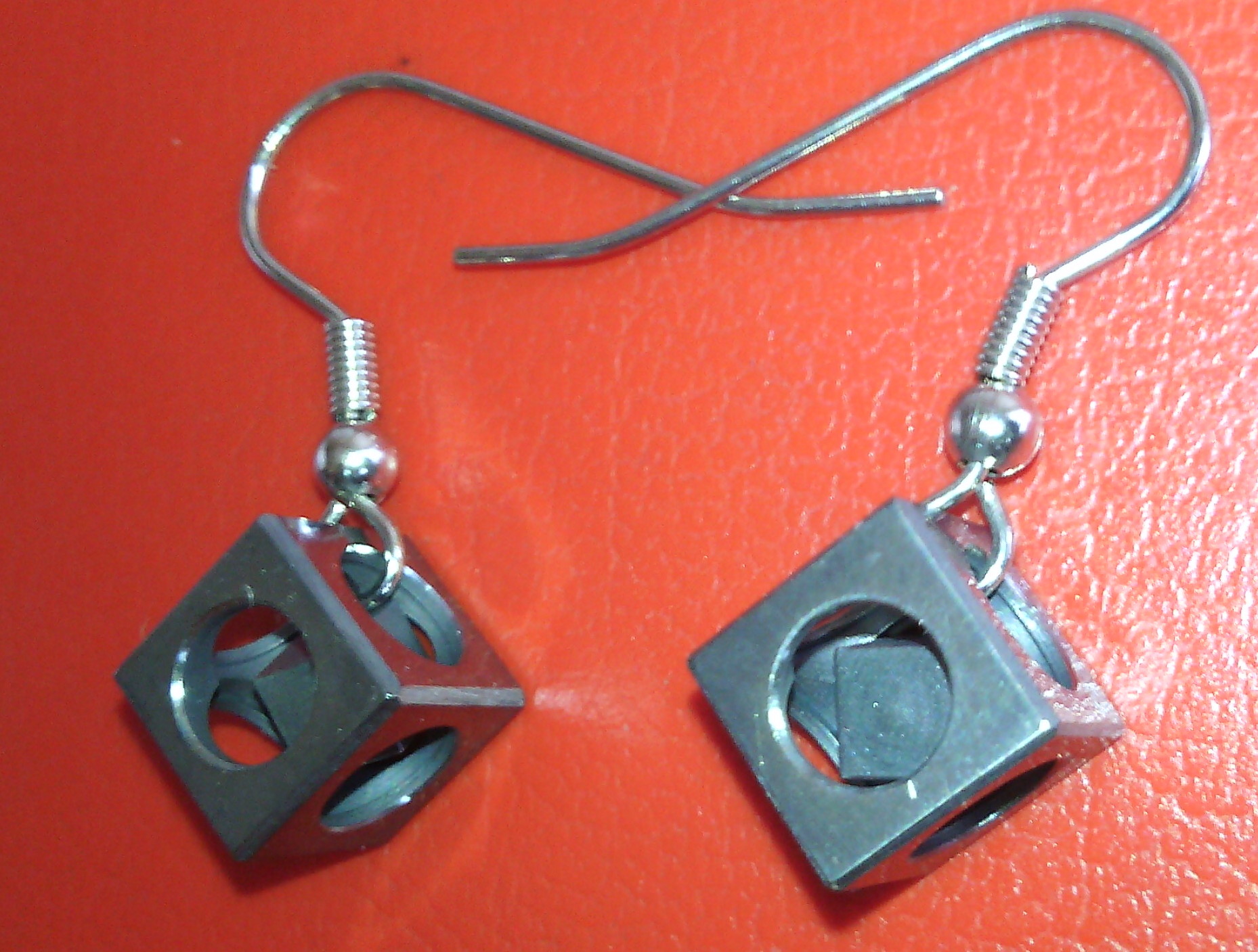 Rozměry 8, 10 nebo 12 mm. Vyrobeno z mosazi. Můžu dodat surové, poniklované, chem. pomodřené, s řetízkem, koženým páskem nebo jako naušnice.