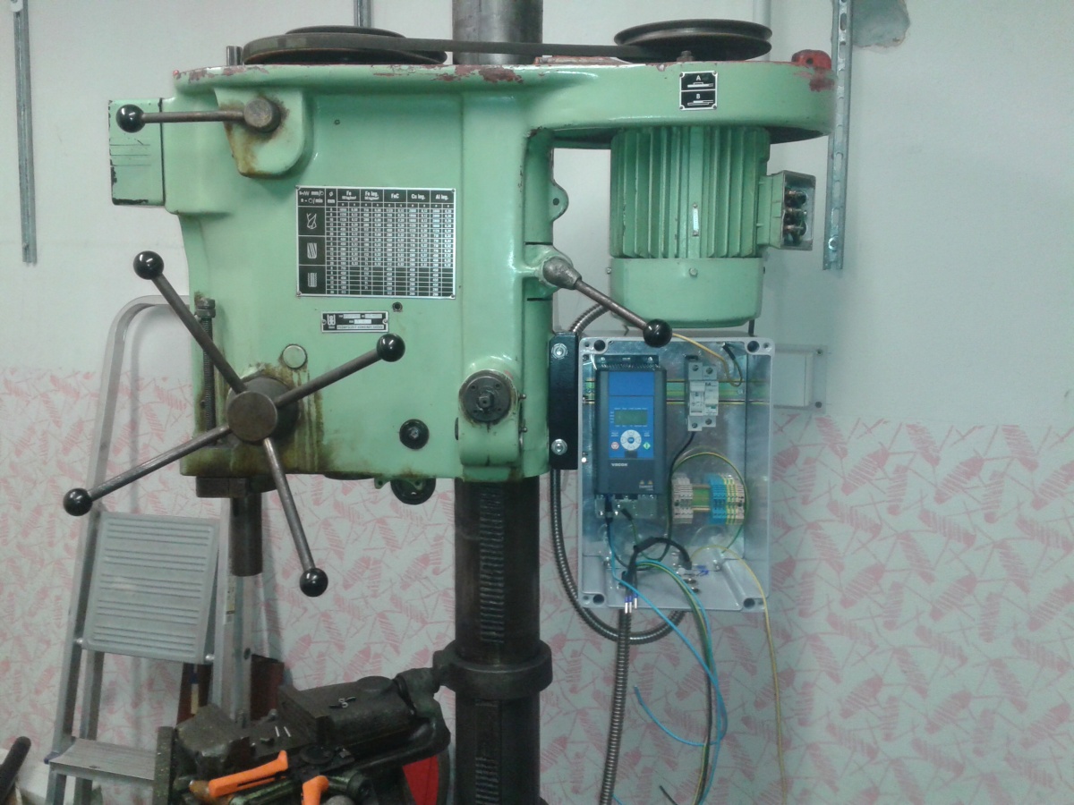 Také jsem dělal nový rozvaděč. S měničem. Ale z důvodu pouze jedné fáze v dílně. Vedlejším efektem je pochopitelně možnost změny otáček. Prakticky nepřehazuji převody.