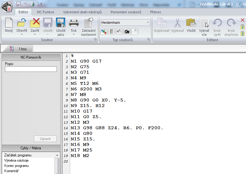 Ahoj, při řezaní závitu (M6) to hází chybu v řádku 15,při kontrole chyb na Hurcu to hlásí špatný kod G80, takže nastroj sjede na pozici a operace se zastavý.. čím to že operaci nedokončí ?