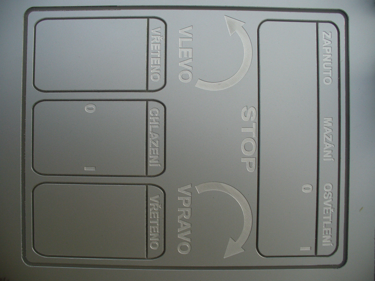 A co takhle potisk sítem dvousložkovou barvou ?? To tak hned neomakáš. Běžně se tím dělají různé panely na stroje. Frézovaný to sice není, ale celkem to vydrží.
