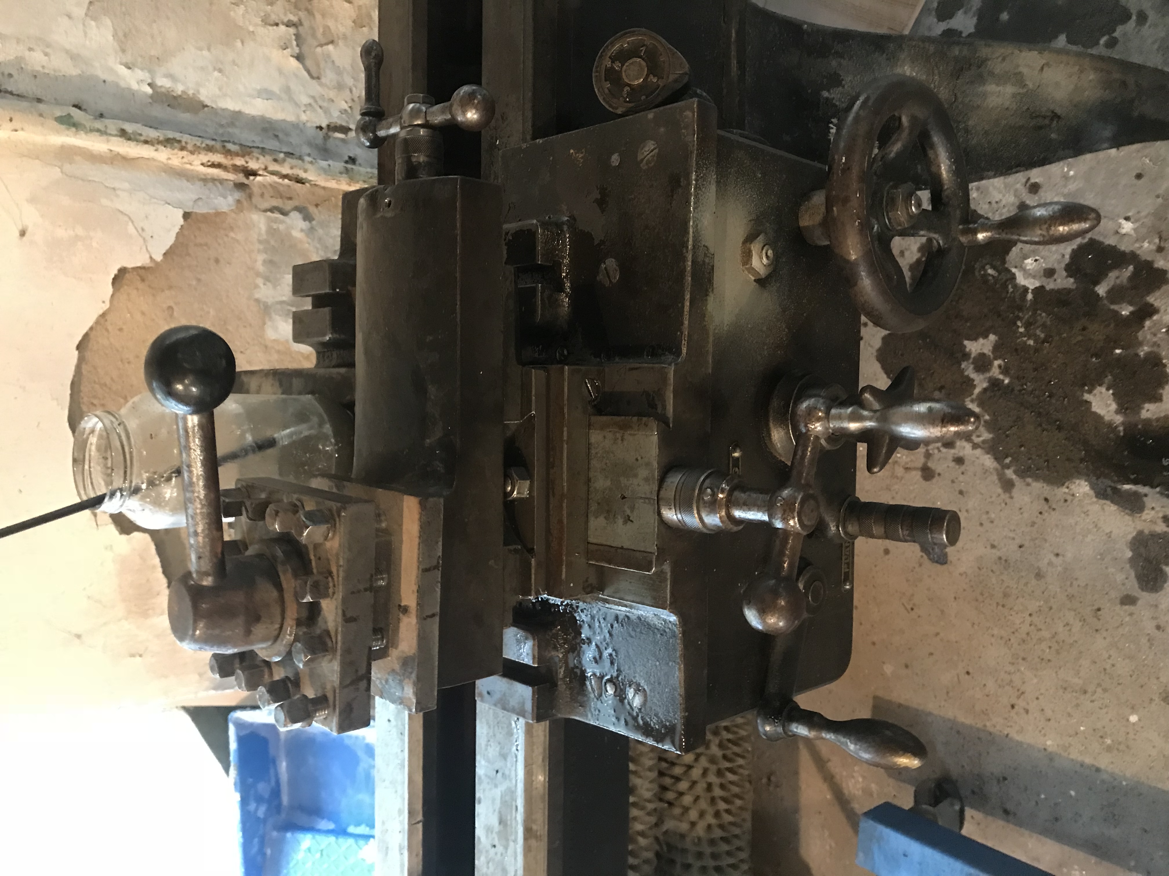 Soustruh vypadá zachovalý a relativně kompletní. Akorát k němu hledám nějaké bližší info.