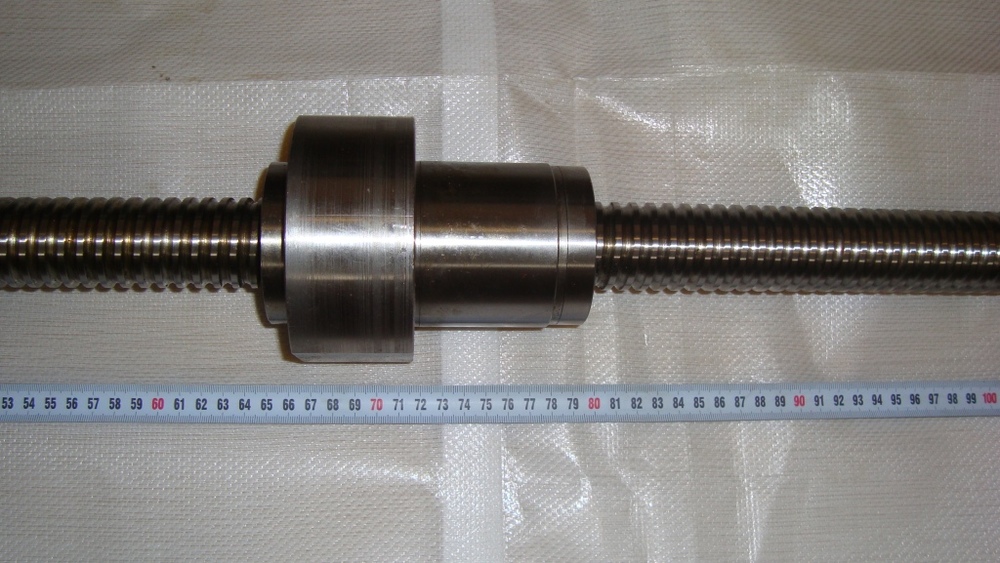 Prodám kuličkový šroub výrobce Kuřim, průměr 40mm, celková délka 1640mm, délka šroubovice 1280mm, délka matky 135mm, stoupání 8mm, nepoužitý