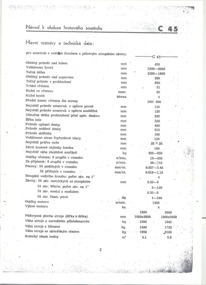 Mám doma TOS C40, což je totéž, jen má oběžný průměr nad ložem 400. Jediné co mi na něm vadí je, že nemá kalená kola v převodovce a ty jsou vzhledem k věku celkem opotřebované. Při zapnutí chodu vpřed je to nechutný zvuk, zvláště při větších otáčkách a na reverz je krásně tichý. Jinak základní verze má skutečně 18-450ot. a verze za příplatek 18-710ot. Zkoušel jsem ho roztočit na 1500ot. a to opravdu nešlo. Snesitelné je tak 700 a konec. Jinak kužel ve vřeteni je M55 a dodnes jsem nesehnal měřící trn a vzhledem tomu, že má štelovatelný kromě koníka i vřeteník, tak je docela pakárna nastavit.
