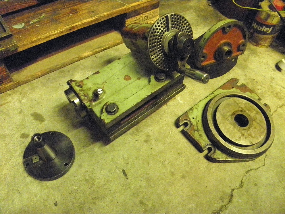 mám tu TOSáckou k nástrojařským frézkám s přírubou pro sklíčidlo 125mm. Nemá ale rameno+pinolu s hrotem, je jen samotná dělička+otočná deska a úhlová deska. A.