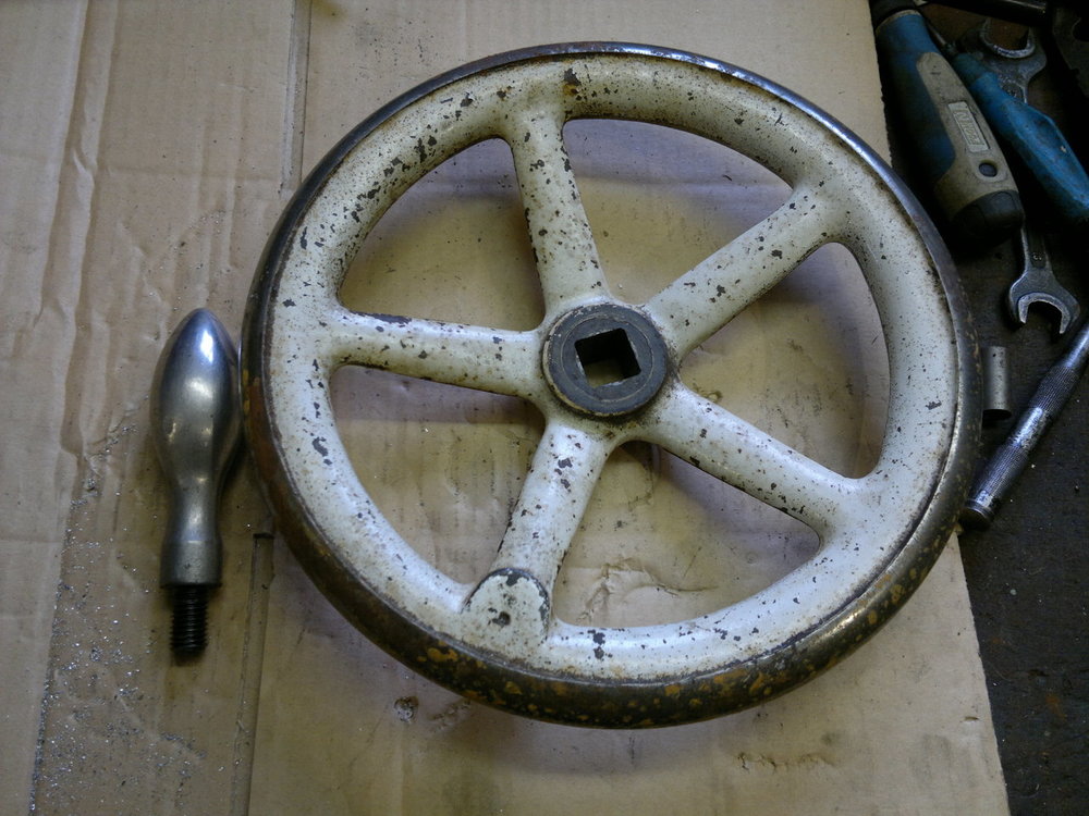 kúpim ručné koleso na koníka, najlepšie aj s rúčkou, s priemerom okolo 250mm. Teraz tam mám nejaké neoriginálne 100mm, ale nemá to žiadnu silu, to je tak na diery do 10mm. Na stredovej diere nezáleží, to si už nejako upravím. Niečo ako na fotke. Ďakujem