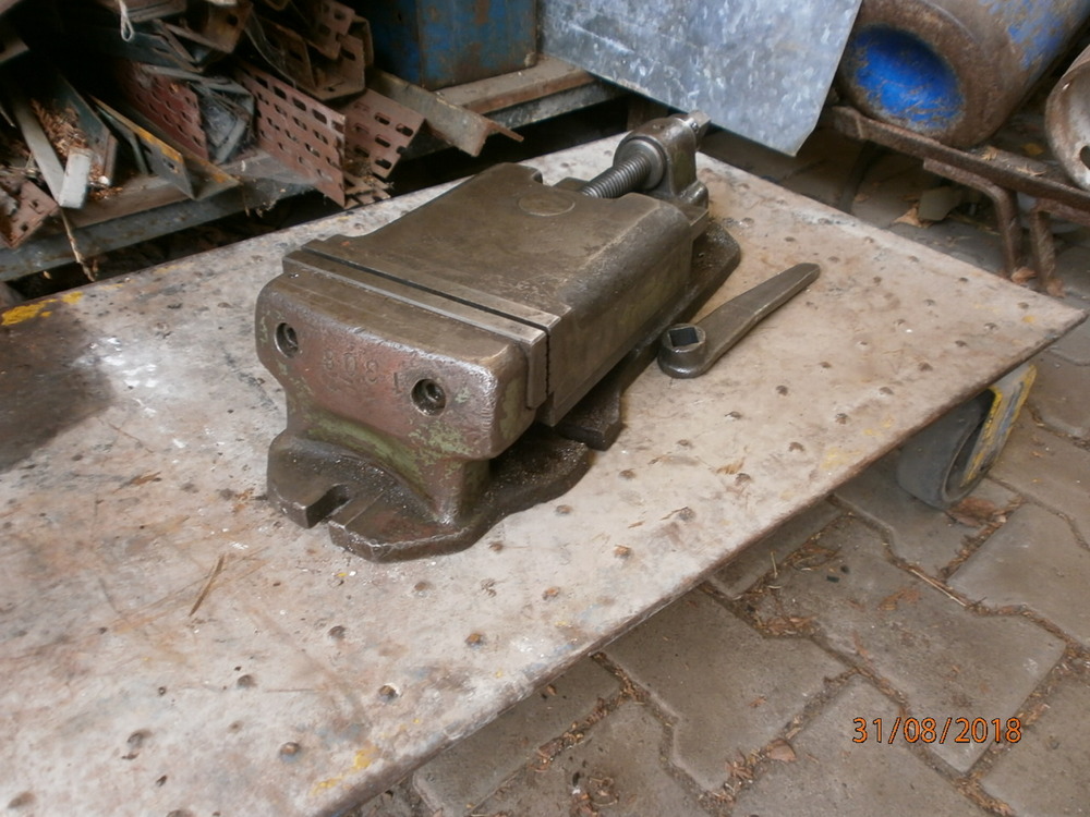 Čelisti 190 mm, délka základny svěráku na přišroubování je 500 mm, šířka 200 mm, váha 42 kg. Je k němu i klika. Cena 2000 Byl pod VS32.