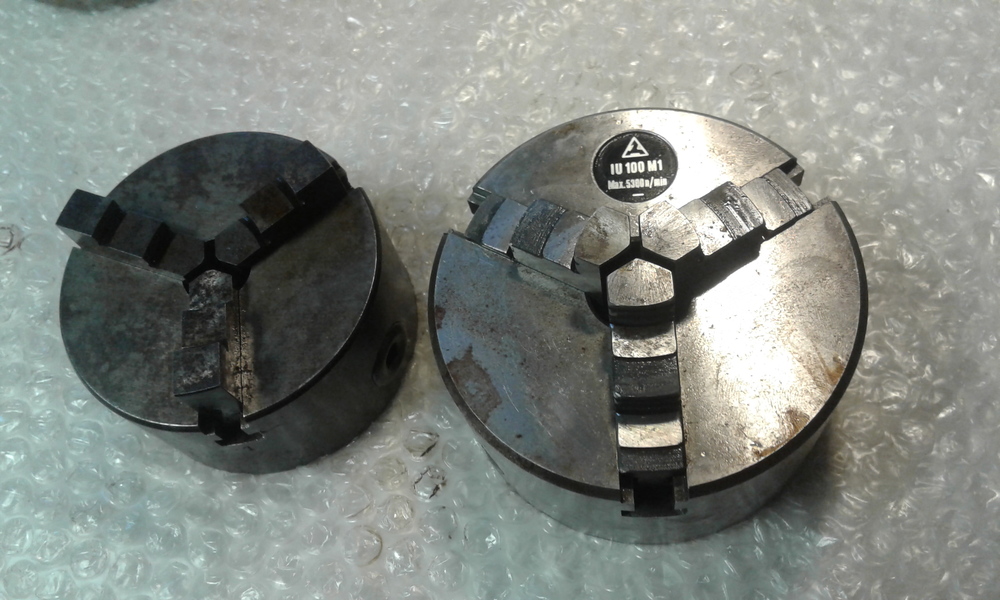 Druhe je starši - neznam vyrobce . Prumer je na fotce - 3 čelistove. Je na Taky v dobrem stavu, zadna hluboka rez a vnitrek zkontrolovany. Celisti jsou v dražkách nafest, takze nejde utahovat jednim prstem, ale zas to neni zadna tragedie a nemaji vuli