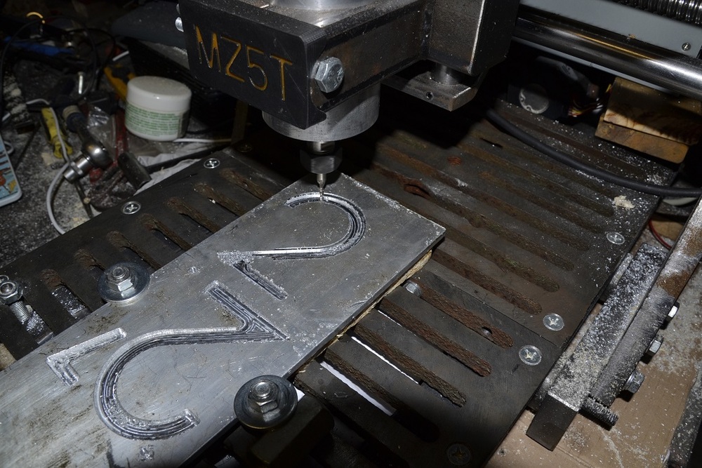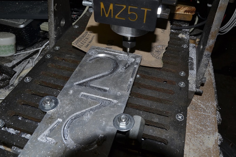 Dost keců, zadání bylo aby to byla frézka na kov. První pokus do dřeva se zdařil. První pokus do hliníku se nezdařil,.. při objíždění kontury to jelo nesousledně a hranu totálně zkurvilo (vytrhalo), plus zalepená fréza na vyhození.