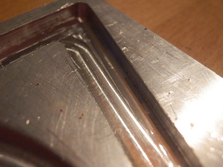 Druhý pokus už úspěšný s upravenou obráběcí strategií (proti směru). Nástroj použitý stejný, čínský z ebay za 20kč (3mm s 6mm dříkem). Při posouzení frézy okometrikou to vypadá, že to přežila bez úhony (obrábění bylo samozřejmě pomalé a velmi opatrné).