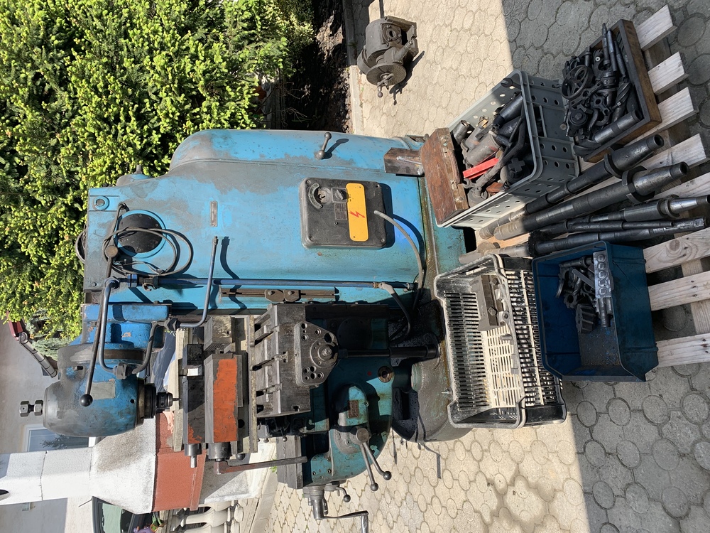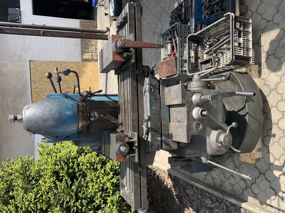 Hlavně ji chybí trám na horizontalni frezovani a ložisko. Dlouhý trny tam ale jsou, třeba to tam někde ještě je... Rybina tam na to je taky. Asi byla někde u zdi a prekazelo to...