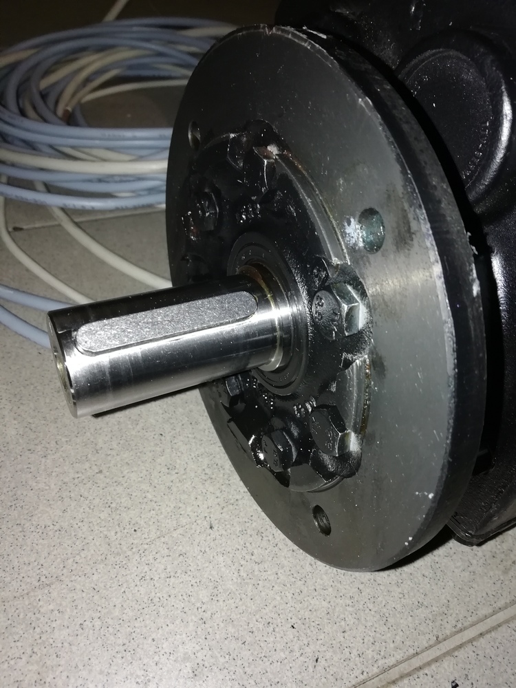 Nepoužívaný jen namontovaný na přípravku. Výstupní hřídel 30 mm. Ostatní údaje na štítku.