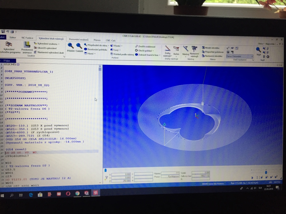 Moj problem je v tom ze jeden postprocesor mi robi velkostne o polovicu mensi kus,dalsi problem ze drahu odsimuluje v came na pohlad dobre, no pri preneseni nc kodu do cimco edit ukaze nezmysel, to iste sa mi stalo na masine pri realnom obrabani,cize cimco edit bol zhodny s realnym obrabanim,dalsia vec bola este zvlastna ze pri simulaci nc kodu v masine drahu nastroja ukazalo dobre,tak ako by mal vyrobok vyzerat ale ako som spustil frezovat tak frezovalo nezmysel.... no stalo sa aj to ze uz simulacia nc kodu v masine bola blbost...