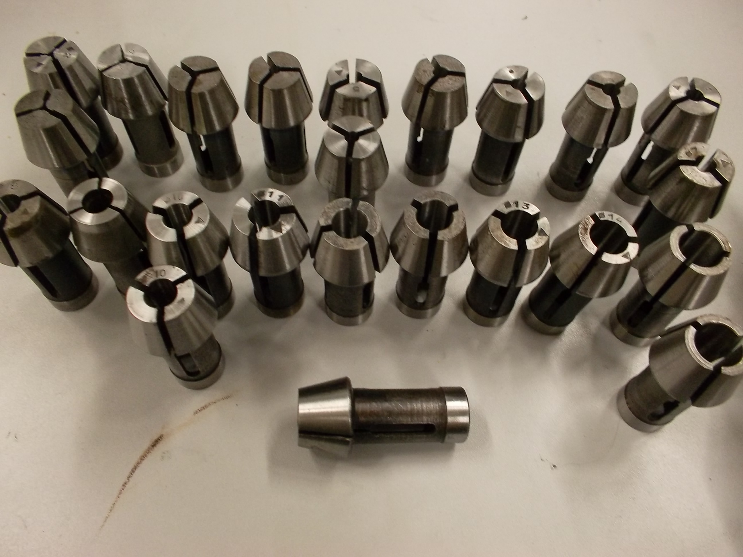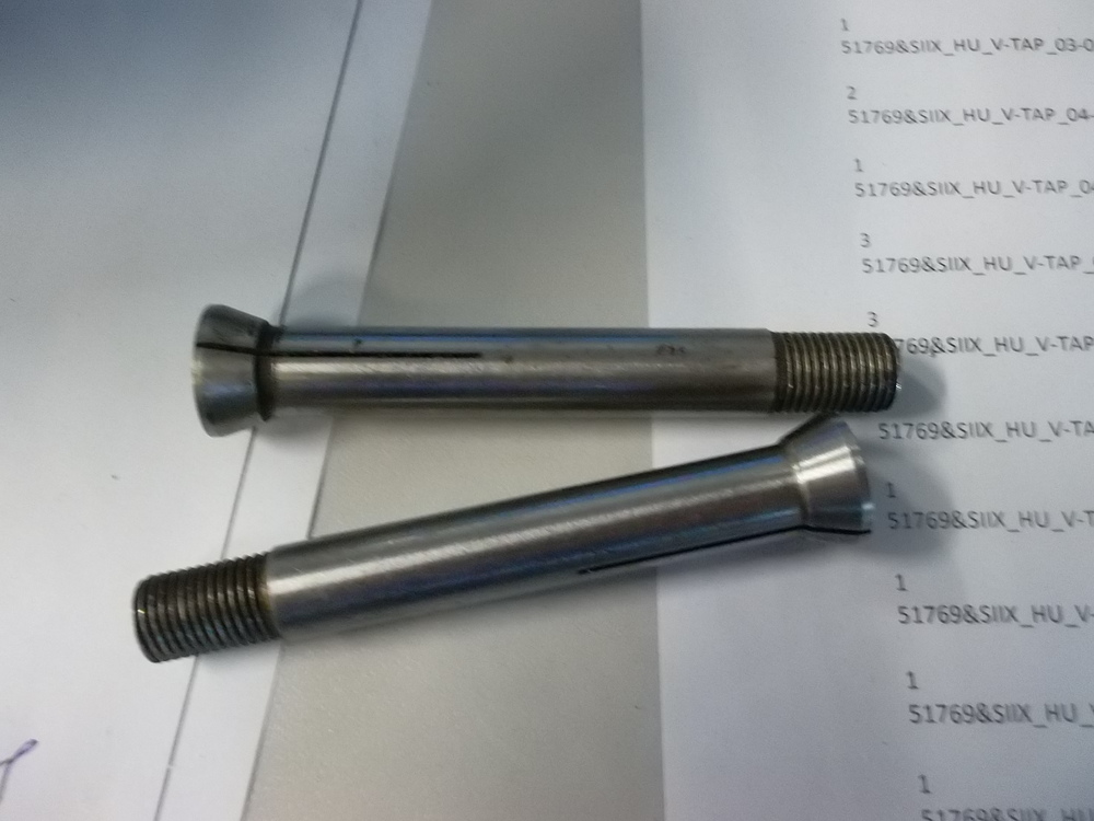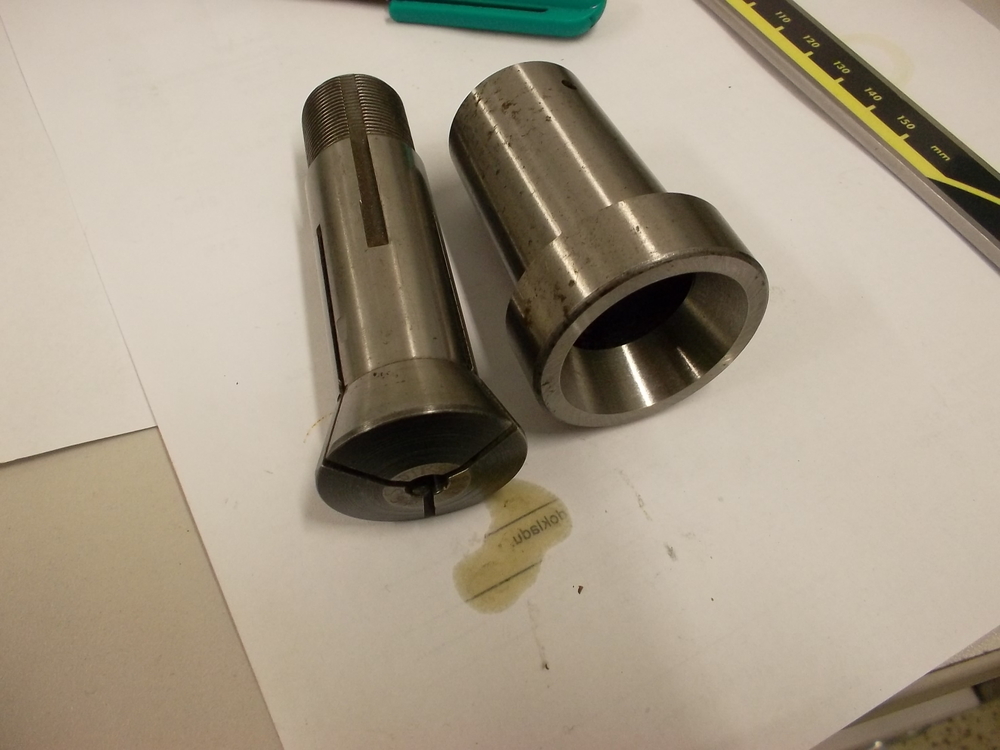 Kleštiny z brusky - průměr dříku 23mm délka 85mm závit M21x1 - více stejných průměrů 3,3 1,5 4,5 5,5 8 7,5 6 11 14 - mám k nim novou vložku do vřetene Me 32 (nejvetší průměr na kuželu je 31,5mm nejmenší 29,2mm délka cca44mm) - cena 1500?