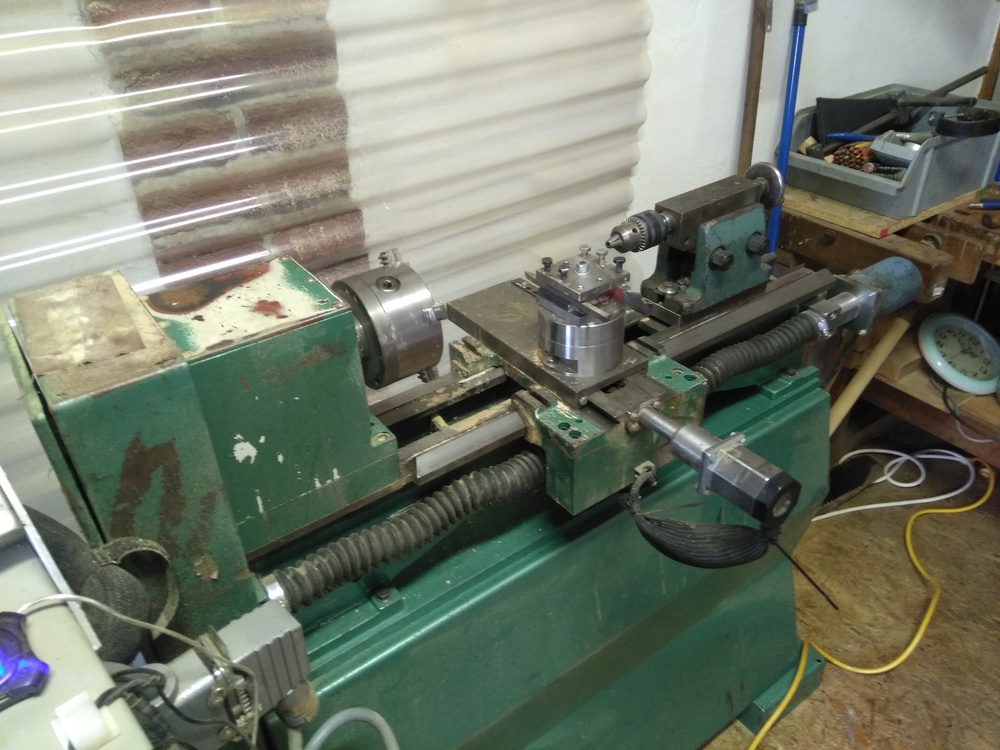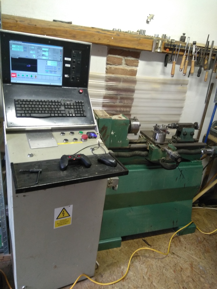 Tyto mašiny mám v dílně čtyři. Jedná se původně o výrobek firmy Sahos SH550 CNC - jako základ byl použit zmiňovaný výrobek Kovosvitu - ale hodně vykuchaný (pryč posuvy, upravený support, celkově očesaný) a upravený jako soustruh na dřevo. Vybavení: 2F krokové motory od MIcroconu - na ose Z 1,6NM a na ose X 2(3)NM - koncepčně dost staré. Na ose X bude asi kuličkový šroub, ale stejně tak i trapézák, jako na ose Z - což znamená problémy - vydírají se jak šrouby, tak matice (mohl bych vykládat ....) Koník na tom není původní, je to nějaký bastl.