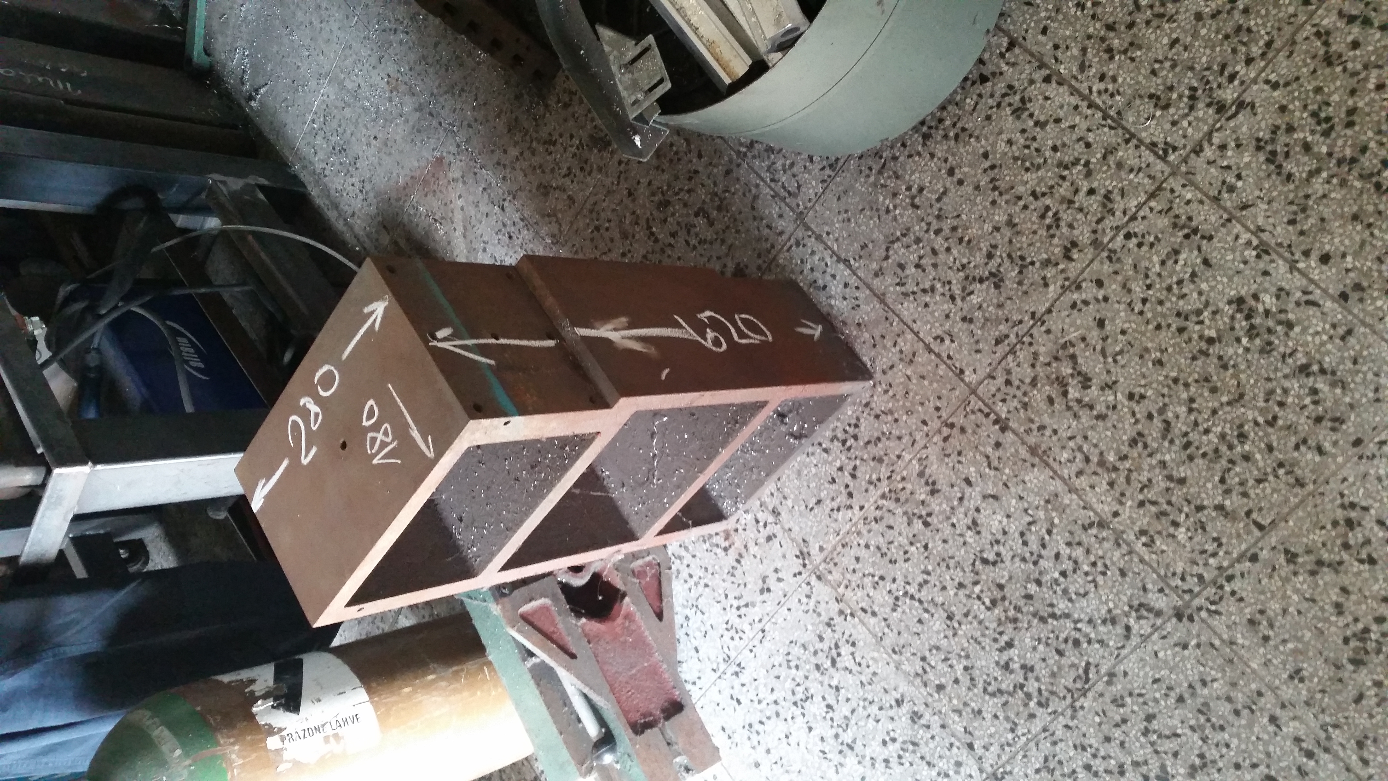 Leží mi tu z ní takováhle kostka : Je to litinové /asi 100 kg / bylo to dvakrát žíhané a je to obrobené na pětiose. Dost se to podobá tomu tvému Učku. Už to trochu orezlo ale není to do hloubky. Z Jičína jseš u mě za čtvrt hoďky.