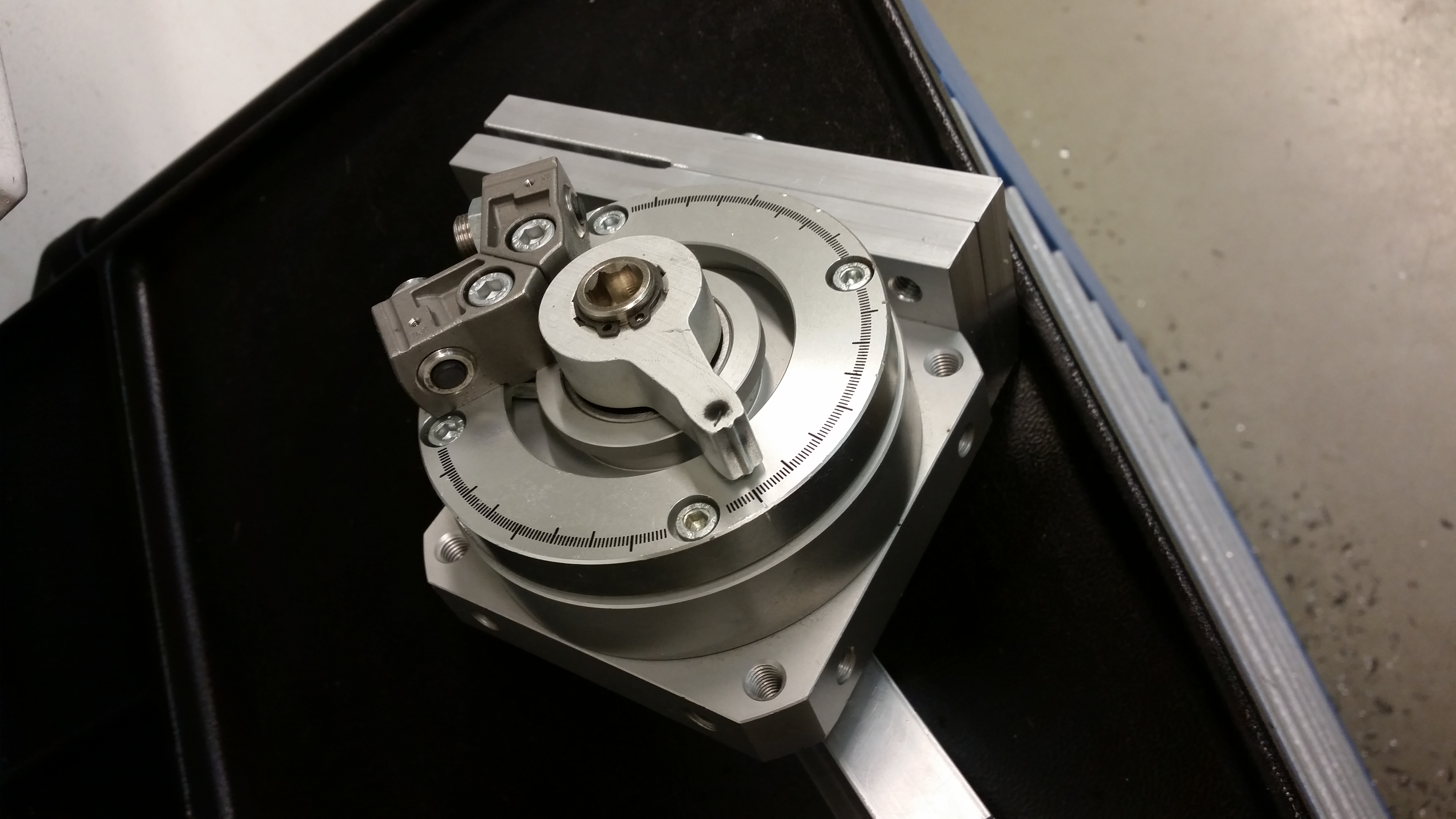 Nicméně nikoliv výklopného, ale výsuvného. Idea je taková že relativně nenáročný (na přesnost) lineární posuv, najede do pozice tohoto vehementu, a elektromagnet celé rameno uzamkne v přesné pozici.