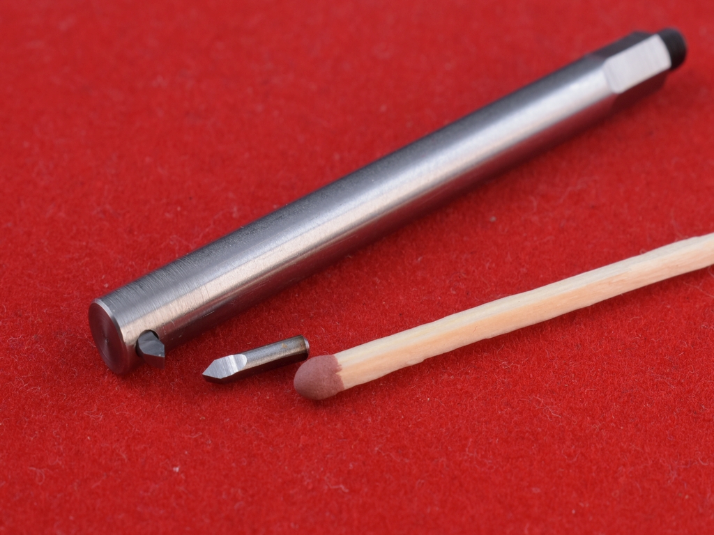 U průměrů 3,17 je to vesměs TK (standartně dodávaný s držákem), ale dělám je i HSS na přání. Mimo základního tvaru jsou možný speciality jako nůž na vypichování mezikruží, např. ukázka zde: https://www.youtube.com/watch?v=8OvNOSRURkw nebo speciál na obrábění čela dílu s otvorem co umí srazit hrany na vnější straně i v otvoru. Ten držák jde použít ale i na vnější soustružení, třeba na zápichy, závity či šneky, stačí ho upnout v nožovce osově a nůž dát "doleva". U většího držáku na průměr 6mm mám taky jak TK tak HSS nože. Varianta na 4mm průměr je aktuálně jen HSS jelikož došel polotovar TK, varianty na 2mm nástroj dělám taky oboje. Zkoušel jsem i nůž na díru okolo 1mm.