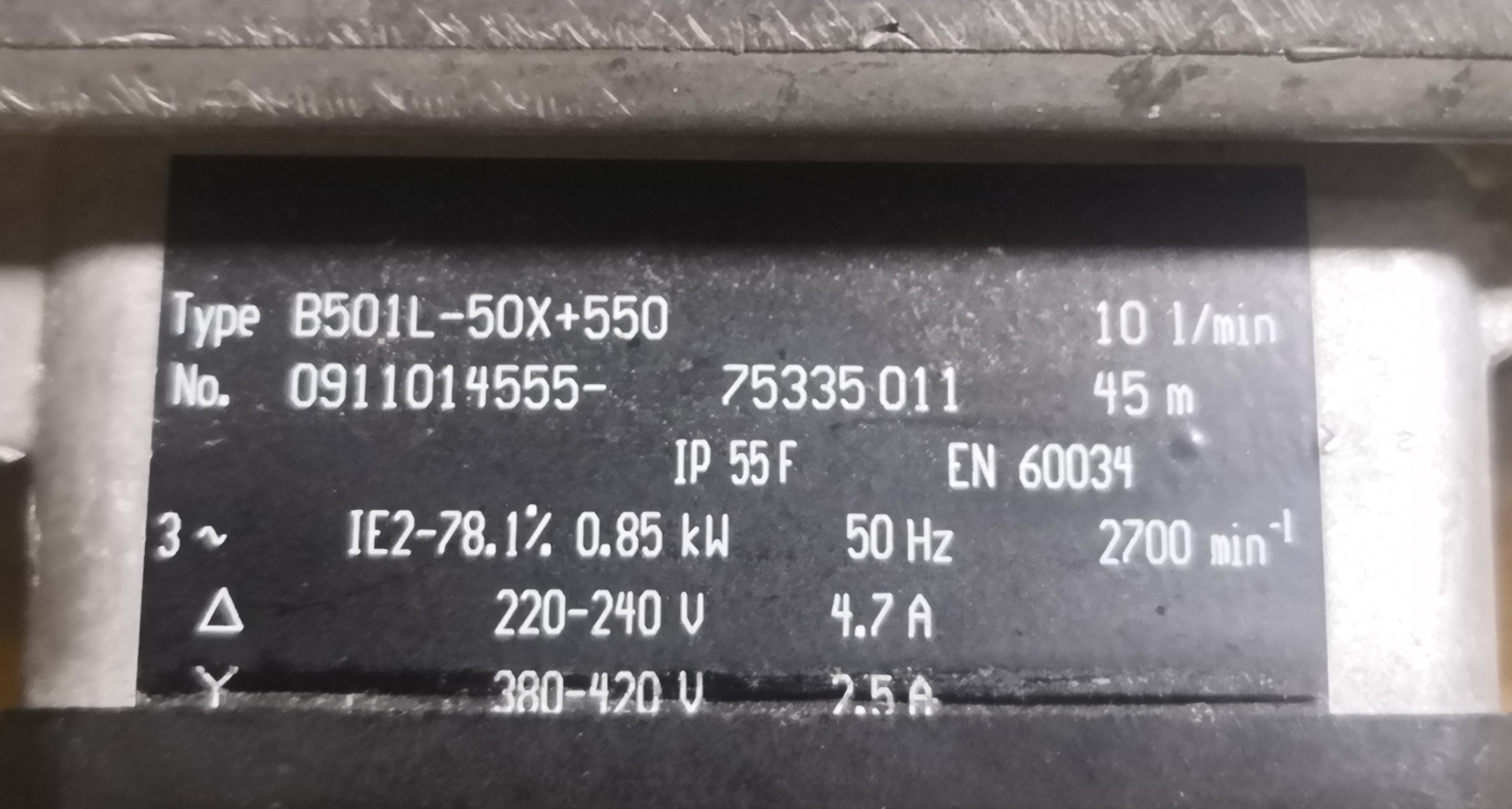 Motor - 4.7 A/2.5A, 0.85kW, 50Hz, 2700 r/m