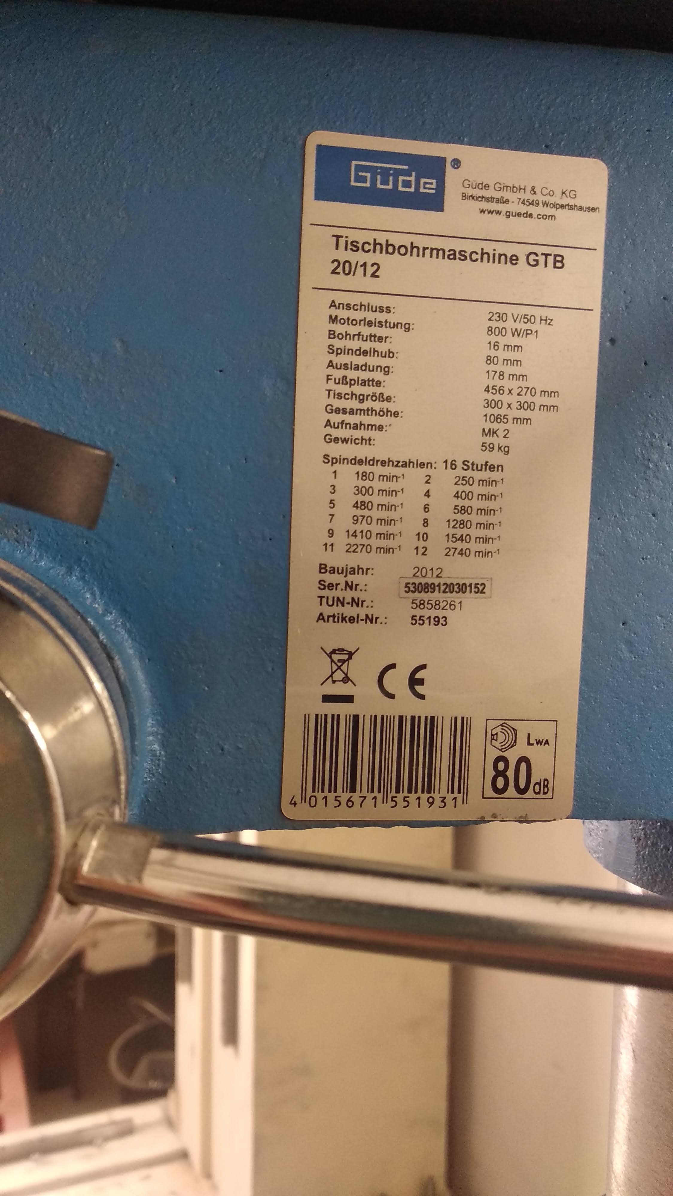 Re: Sloupová vrtačka Güde 20/12 za 2.500Kč