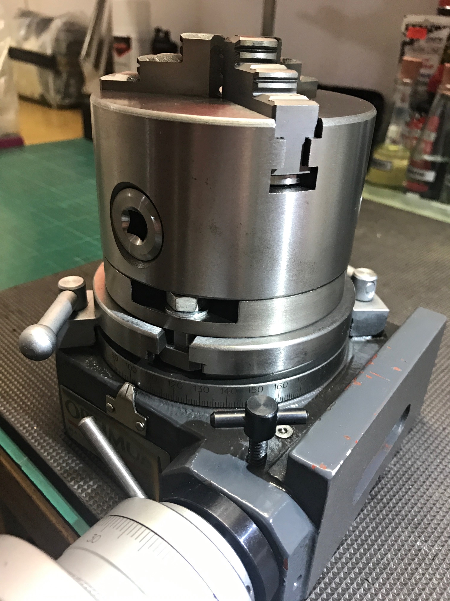 No přiznám se, že mě vůbec nenapadlo o tom moc uvažovat. Ve Feroně (ještě zlaté Holešovice) mi uřízli s přesností asi 1,5 mm plátek oceli a pak jsem si vyhrál, vytočil jsem to, vyfrézoval, vyvrtal, niklíkem ponikloval a funguje to jako příruba pro přichycení sklíčidla na otočný stolek.