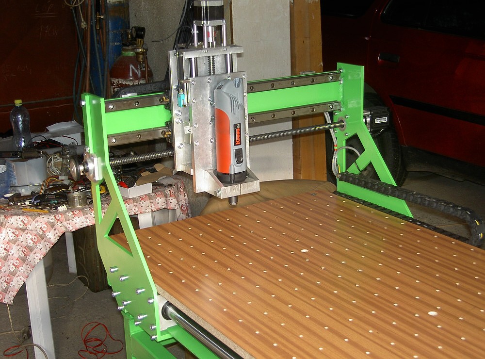 Původně má představa byla úplně někde jinde.Nějakou MDF ku,pár závitů,elektroniku zbastlím sám a je poděláno.Pak jsem začal pročítat toto forum a už nároky stoupaly.Když už byl hotové rám,usazené tyče,osa Z hotová, přijel kamoš jestli nechcu tak3,5m lineáru,8 vozejků,dva kul šrouby 25 s matkama aji s pytlem ,