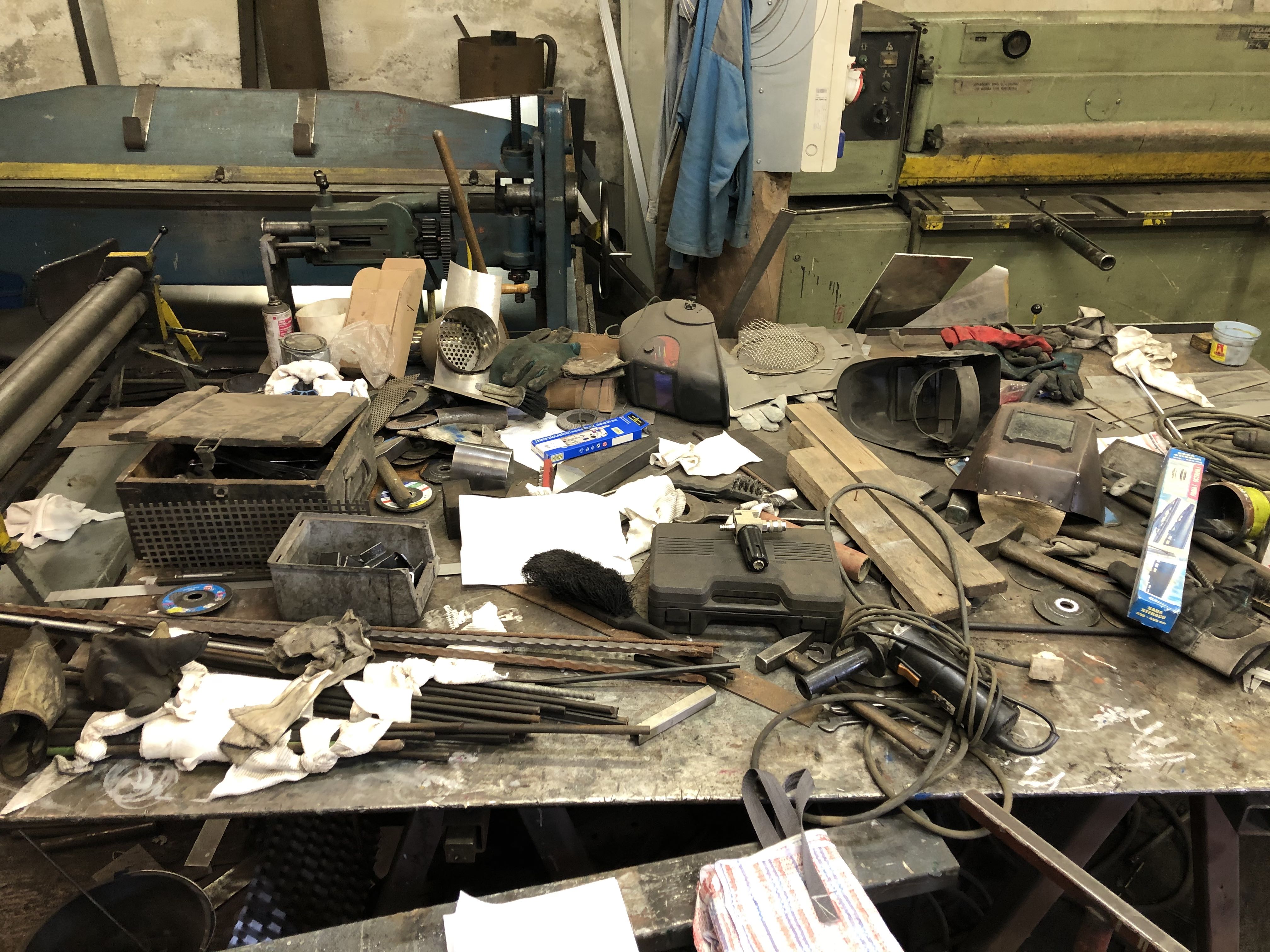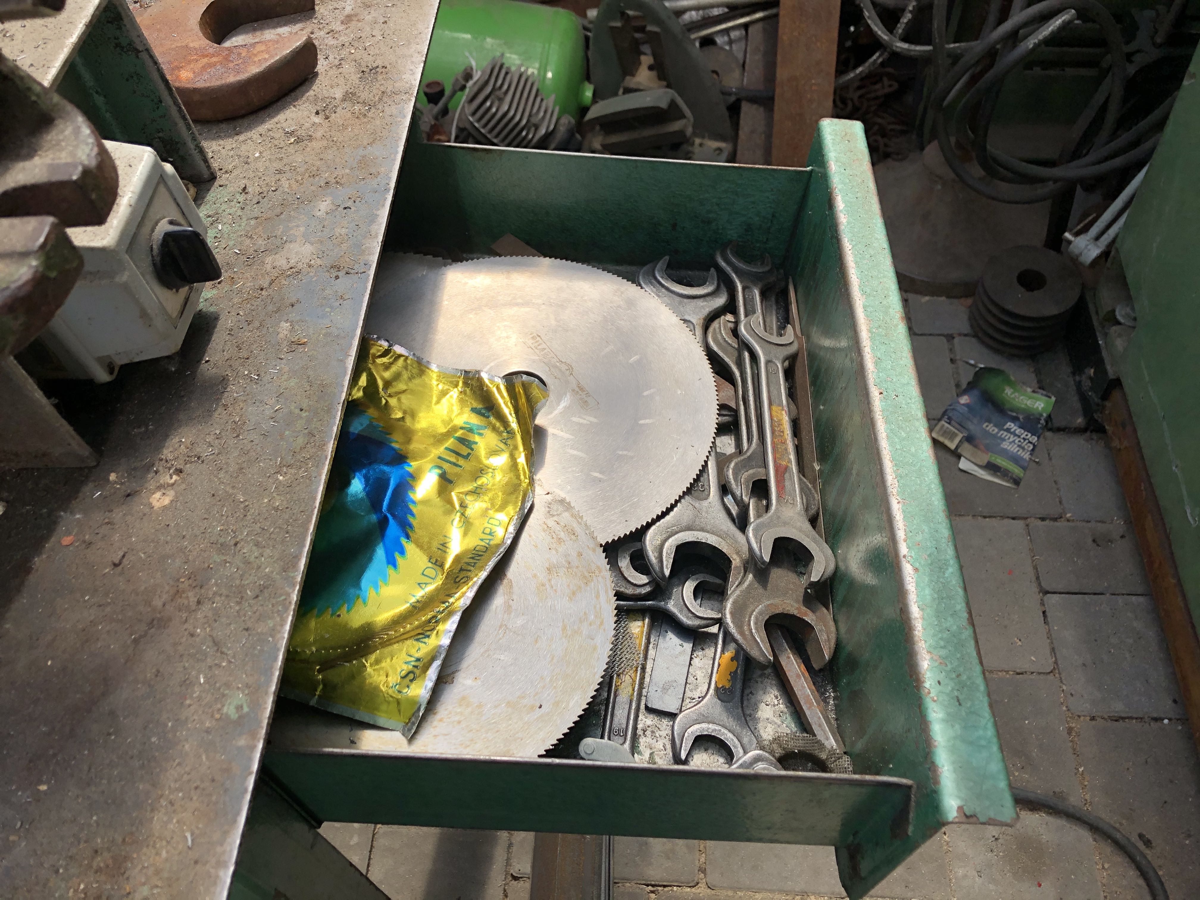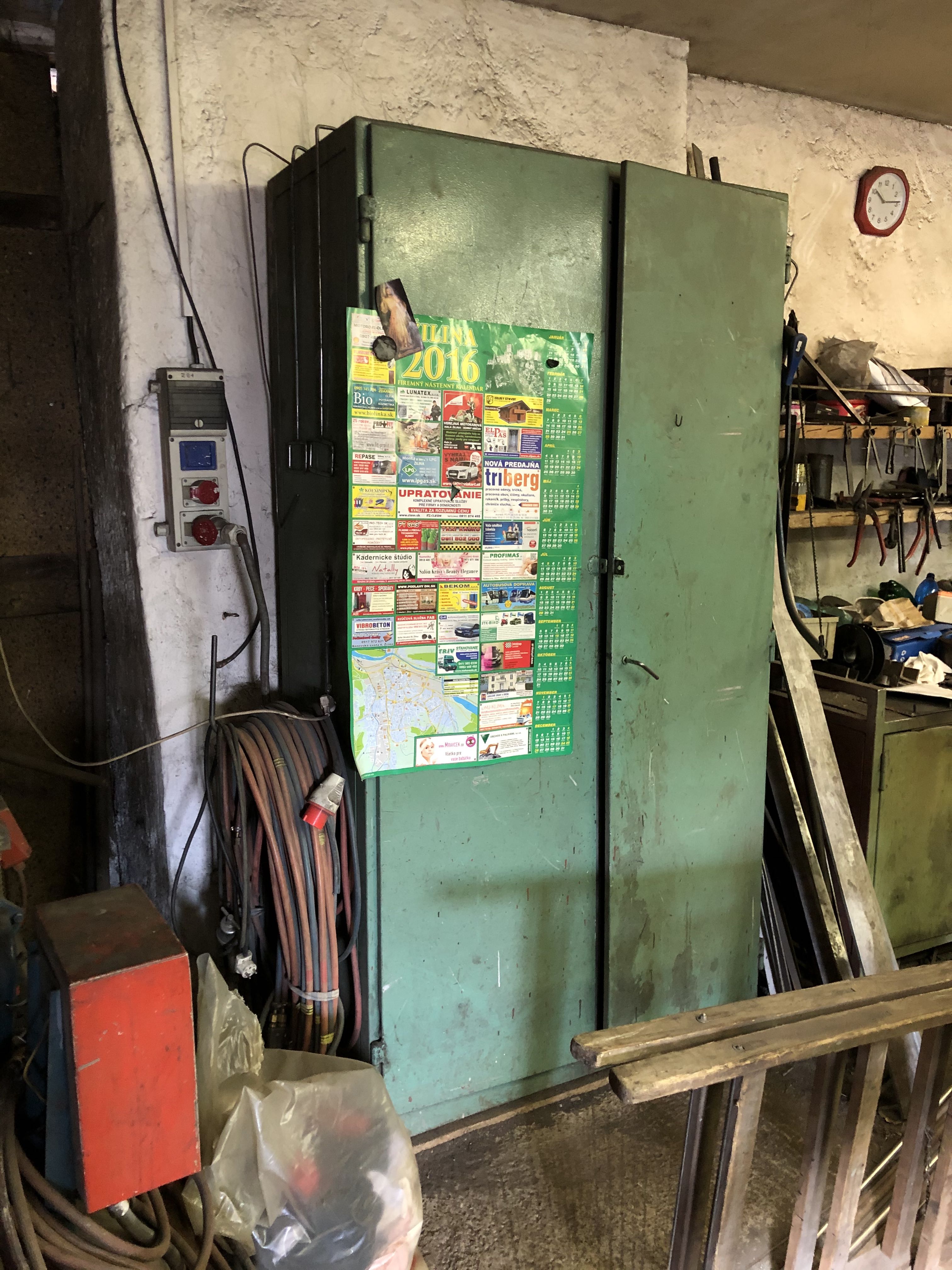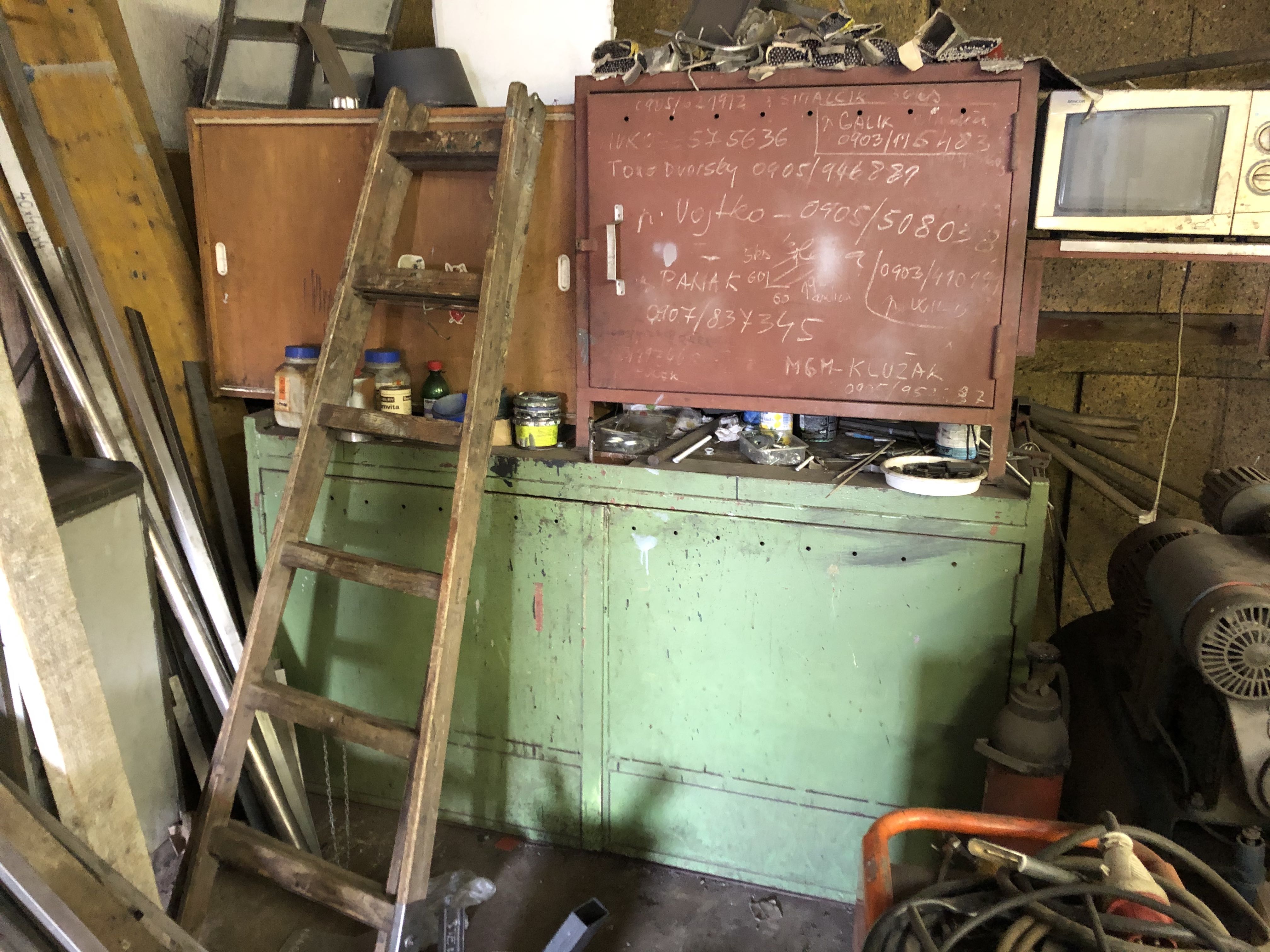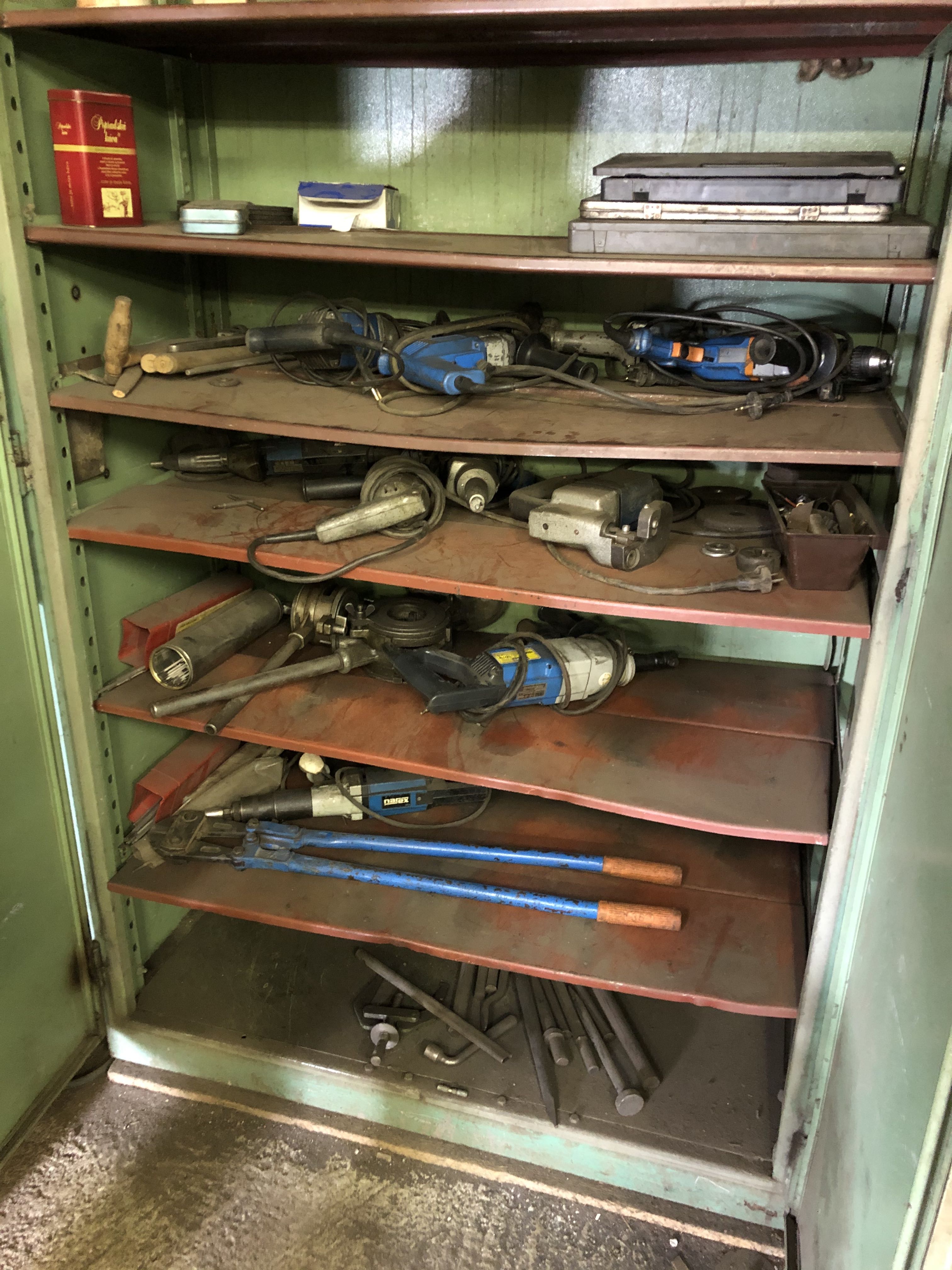 Rôzne ručné náradie, plechové skrine, náradie, matreriál.