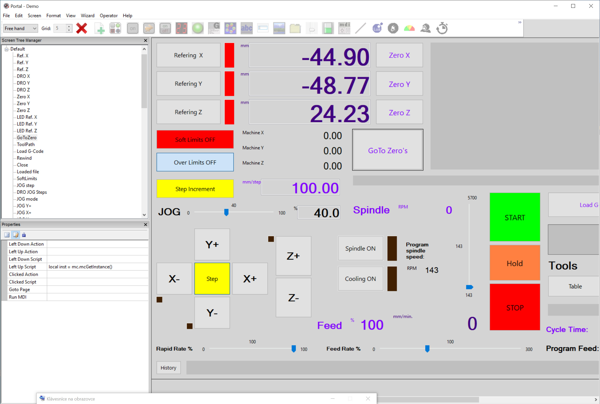 řeším problém s Mach4 Home a skriptem pro vrácení na pracovní Nulu. Je to utčitě problém mého skrínu, ale nevím jak dál. Udělal jsem si vlastní obrazovku od nuly. Nejřív jsem to dělal tak, že jsem upravoval původní screen, ale to bylo nepohodlné. Vše mi funguje až na jednu, poměrně potřebnou funkci a to "vrať se na nulu". Toto mi to píše: