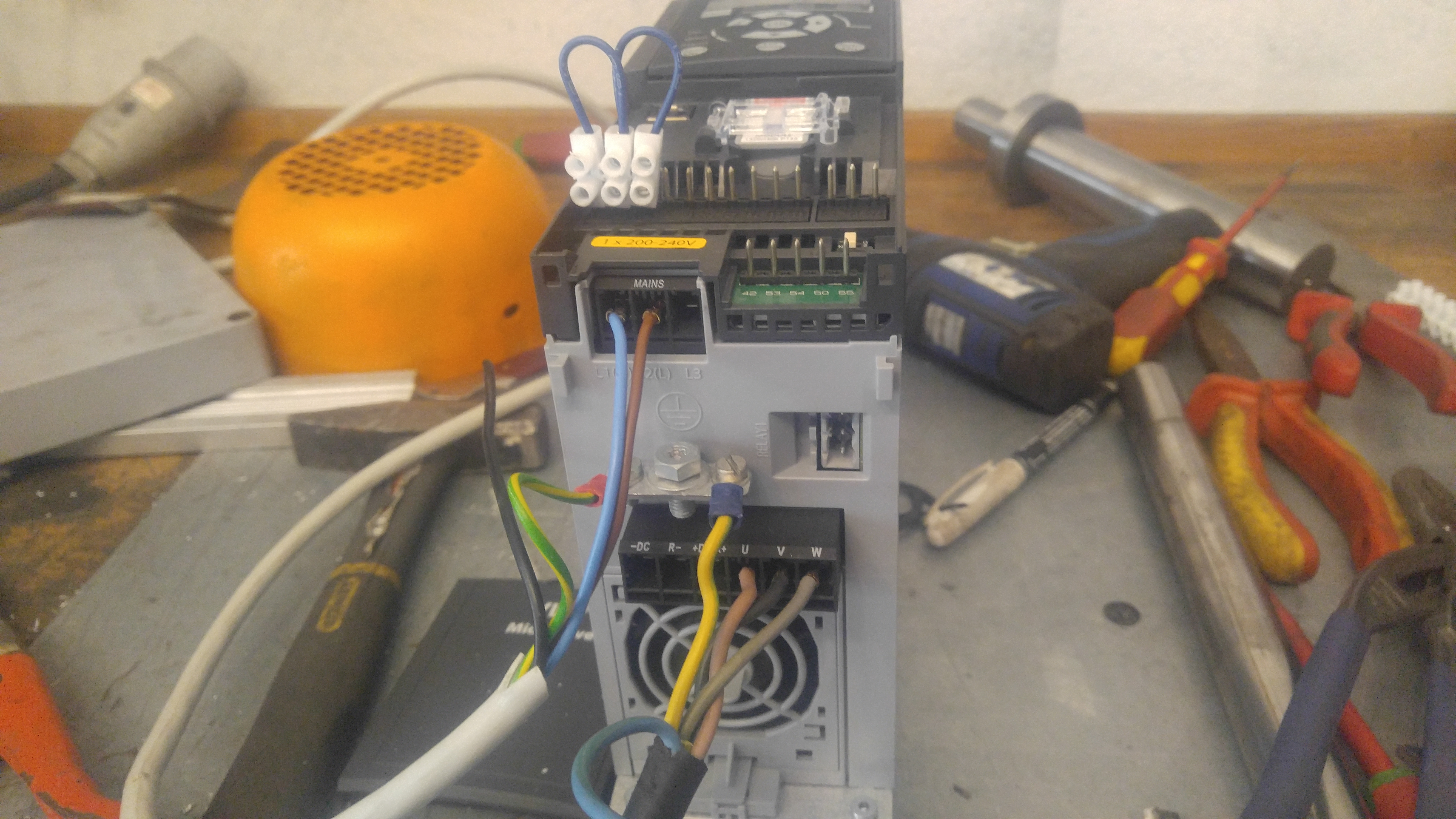 Prodam tento frekvencak, je uplne novy, bohuzel jsem ho doma rok prendaval a ztratil jsem pytlik s origo svorkama... Na silovinu pasuje klasicky faston a na ovladani to lze vyresit viz foto. Planoval jsem ho na soustruh ale potrebuji silnejsi.