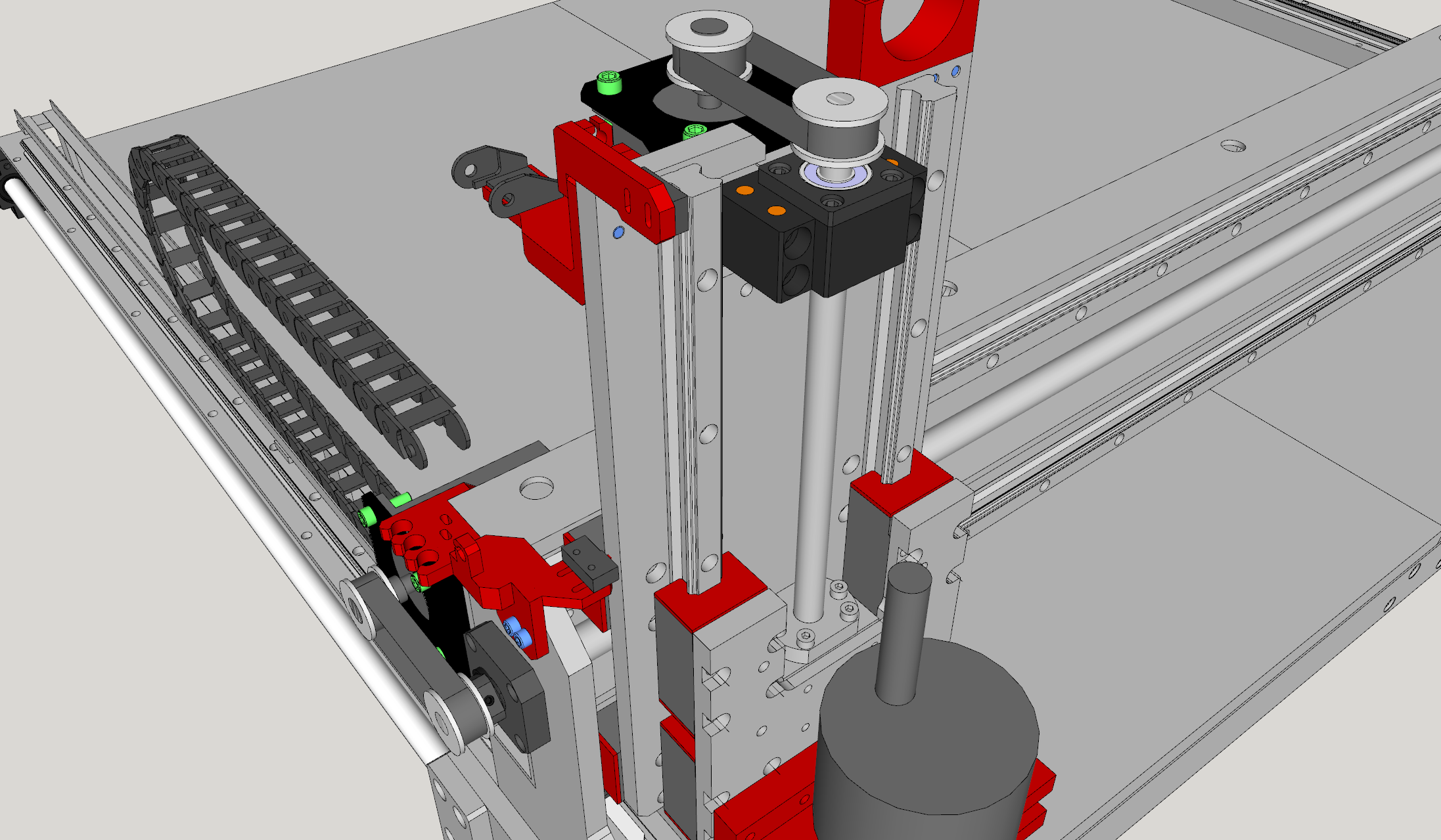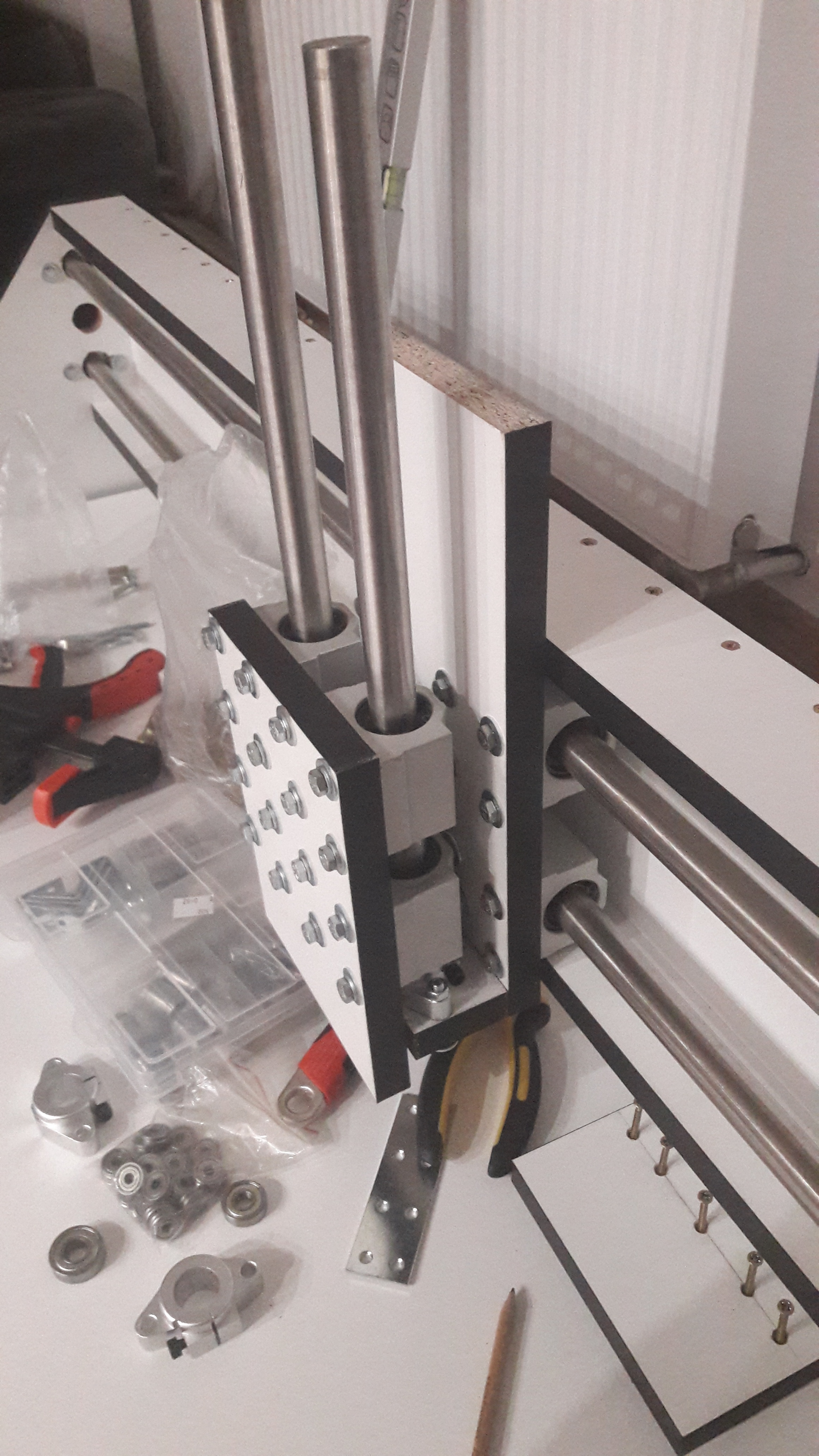 Vedenie : hlinikovym profilom v hlinikovom profile a loziskami na profile, lebo sa mi to zdalo ako lacne riesenie. Od toho napadu som vsak upustil, lebo takto by do nemalo pozadovanu pevnost a hlinikove profily by sa casom znicily a znizila by sa aj presnost a koniec koncov by to asi ani nefungovalo.
