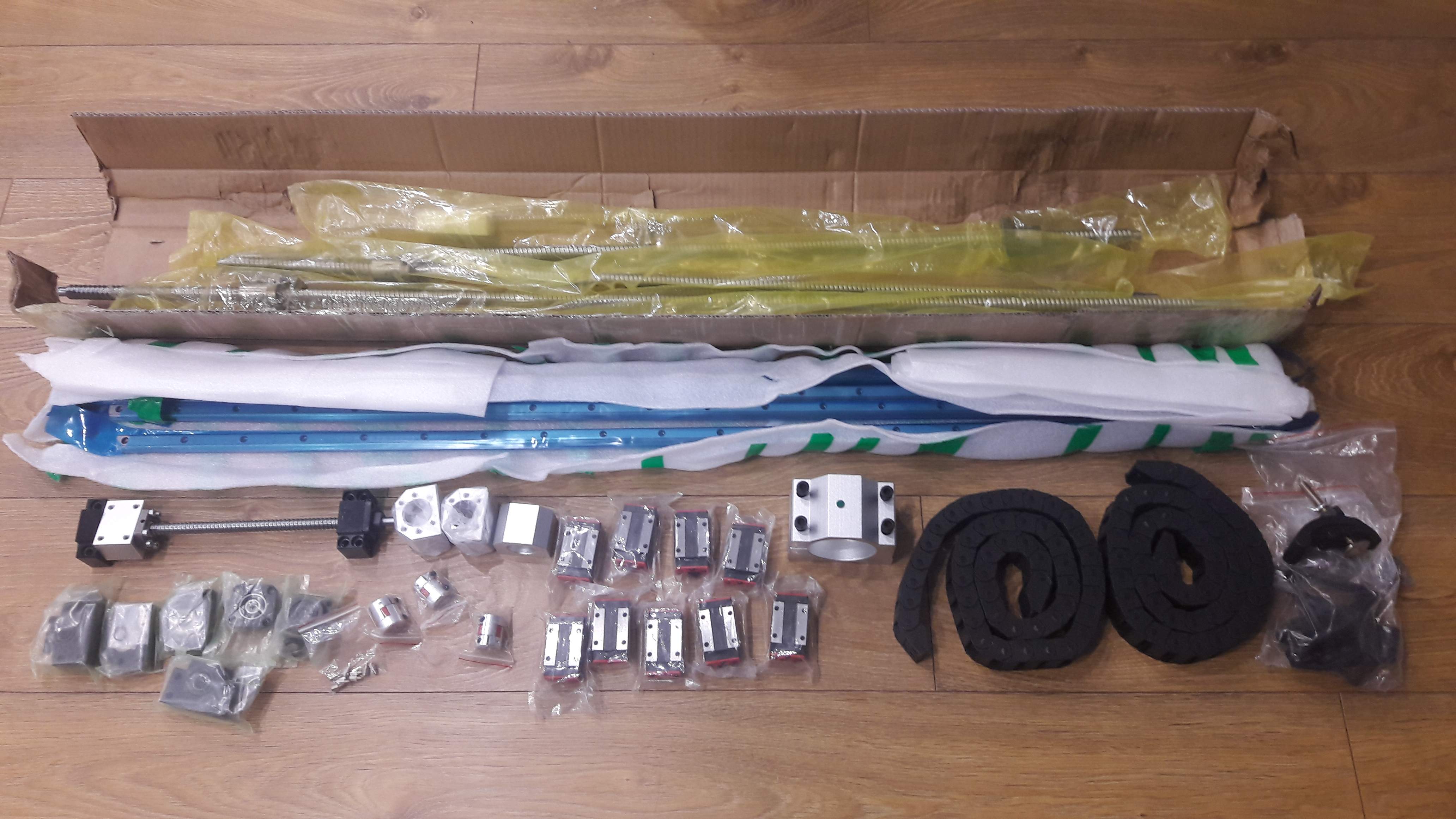 To co vidite na obrazku je niekolko mesacny proces objednavky a nekonecneho cakania, na konci ktoreho je slusna kopka komponentov na stavbu novej CNC, ktoru som avizoval na zaciatku vlakna.