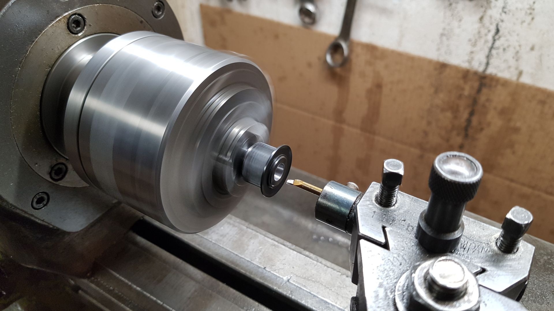 Buď jsem blbě měřil, nebo jsem neohlídal vůli v příčném posuvu nebo něco jiného. Vrtalo mi to hlavou celou noc a nakonec se kloním k následující teorii: dělal jsem to (po vyvrtání 7mm vrtákem) nožíkem s hodně ostrou špičkou a možná jsem jel při přibližovacích řezech tak rychle, že mi tam vznikala šroubovice (a já šuplerou měřil její vnitřek, nikoliv dráhu špičky nože). Poslední průchod jsem jel kvůli hladkému povrchu pomalu a tak jsem ubral mnohem víc, než jsem čekal.