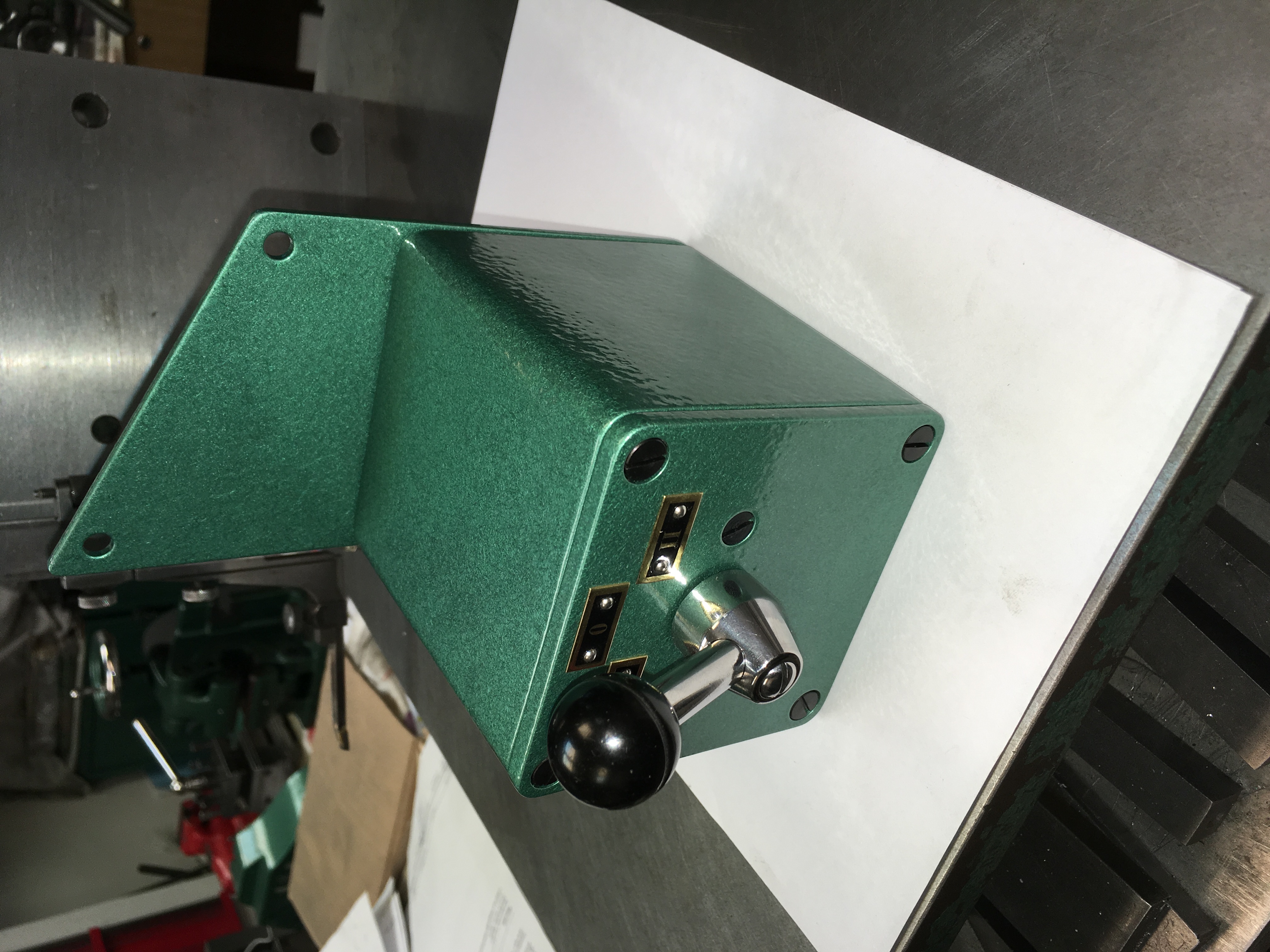 Na soustruhu mi ještě chyběla originální "krabice" s přepinačem chodu motoru. Díky ochotě i zdejších majitelů těchto soustruhů , ještě jednou všem moc děkuji, se mi nakonec podařilo sehnat fotky te správné "krabice". Výrobce soustruhů totiž nbeustále inovoval a krabice v průběhu let měnila místo i způsob uchycení. Držák s "krabicí" je přišroubován k loži dvěma šrouby W 1/4 a šrouby W 1/4 slouží také k přitažení krytu kool k vřeteníku.