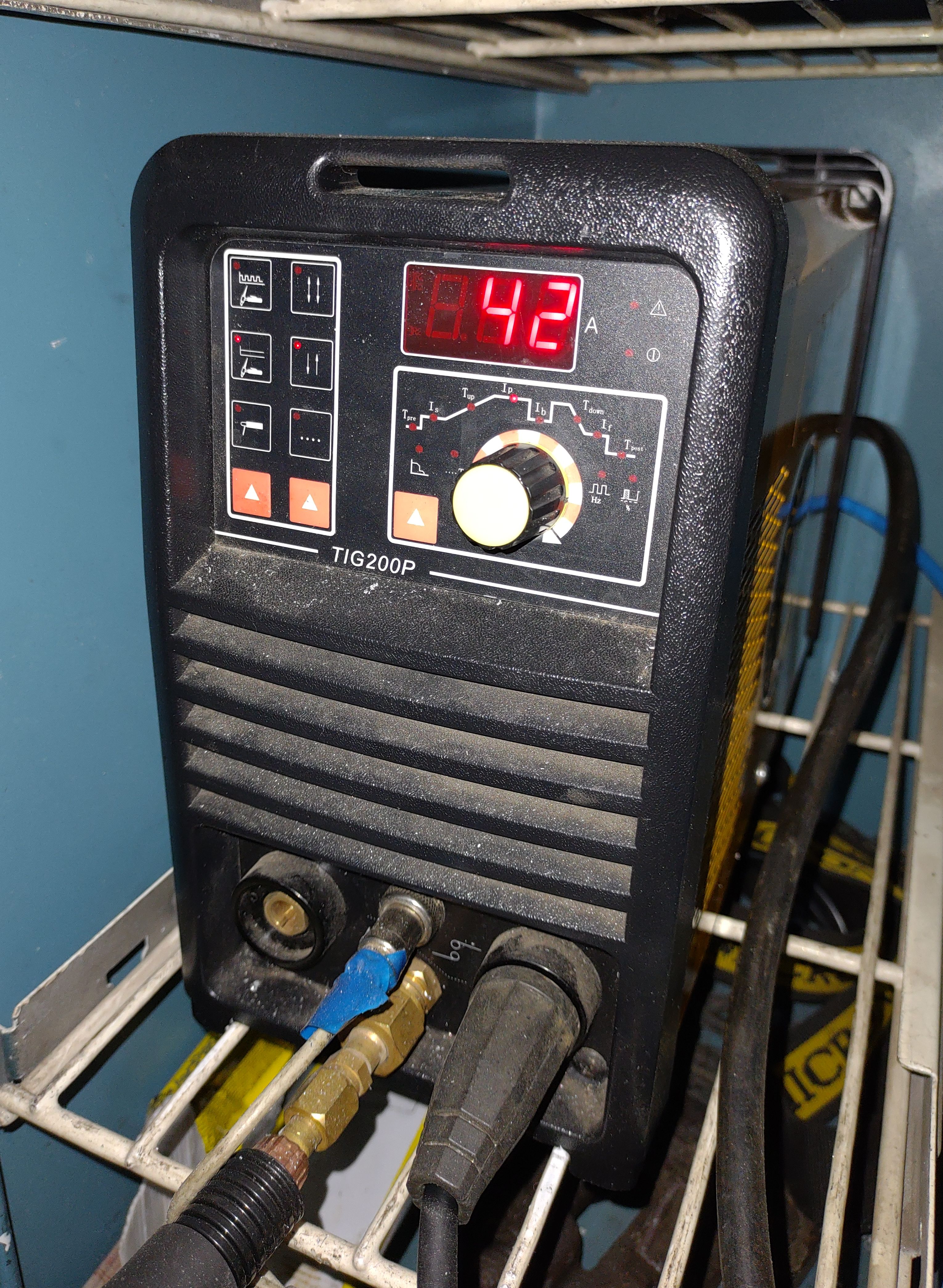 Stroj + kabely na obalovanou elektrodu 2 Ks, hořák tig s příslušenstvím jako je keramika a wolframové elektrody, redukční hodiny pro plyn.