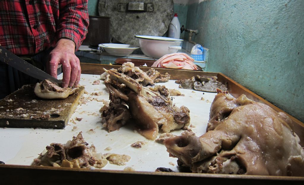 Podloženo pečenou krkovičkou na kmínu, domácí chléb, i nějaké to pivko bylo