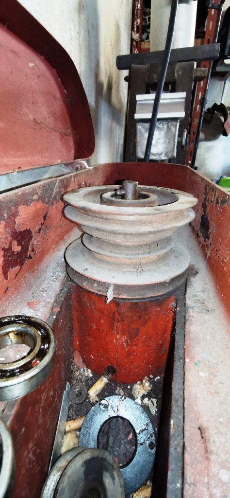 Dakujem moc by mi to pomohlo celkomo mam pocit ze sa ju pokusal niekto opravit ale viac pokazil a zahodil ju ,aj ta oska na remenicu vretene je nejak divne otocena a vnej zbrusene perko, aj nejake fotky ako je upevneny motor, je tam nejaky spanovak na remen? a vykon motoru, mam doma 0,75kw 1330ot. ci by mohol stacit?