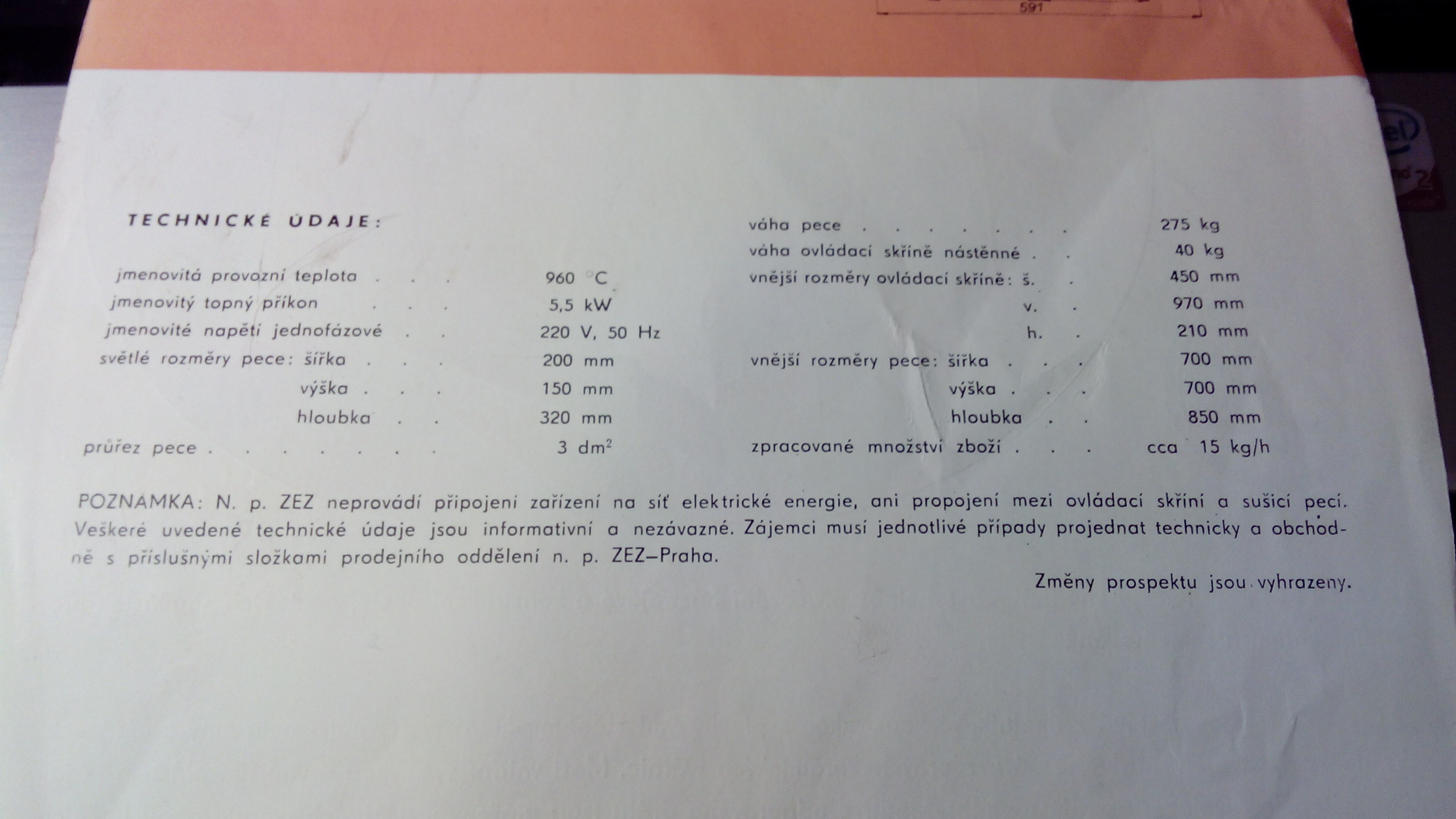 Mechanicky celá,ale omlácená,šamoty uvnitř popraskané,ale nevypálené-pec pracovala jen málo a na malé teploty,proto jsem ji také kdysi koupil. Takže by bylo dobré před zprovozněním vyzdívku poopravit,anebo pec rozebrat,a šamoty dát nové-novou sadu k tomu mám a dám,stejně jako keramické vývodky od spirál(někde byly i spirály a termočlánek do 1000°C assr relé 50A,ty musím ale pohledat-neslibuju,že vše hned najdu).Není k tomu původní regulace,která byla stejně velká jako pec-tu jsem už před lety zahodil,stejně by to s ní dnes nikdo neprovozoval. Ostatní komponenty k tomu jsou vč. orig.misky z nespalitelky na dno,předek je sundaný kvůli úspoře místa. Více viz obrázky .Cena k jednání 7000,-ale můžeme měnit i za něco jiného,než jsou prachy.Příkon 5,5kw.