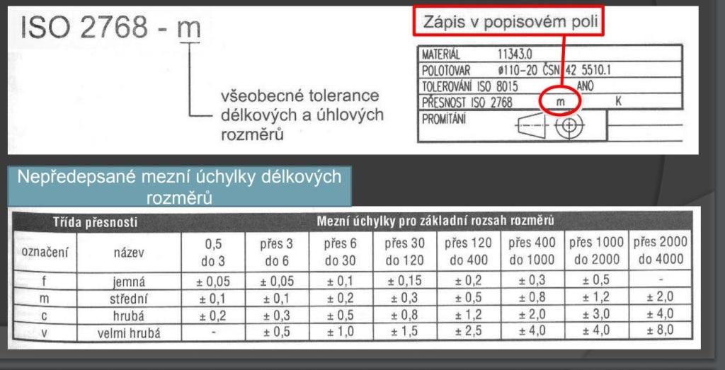 Řekl bych, že když není přesnost uvedena, udělá to soustružník, jak mu to vyjde, a musí být alespoň v té "nejhorší" toleranci. Možná by profíci, co dělaj na kšeft pro firmy ještě dodali, že pokud ani ve výkresu, ani v zadání není vůbec nic, pak by to ani takhle nemuselo být, protože ta tabulka je podle konkrétní ISO a pravděpodobně platěj i ne-ISO normy.